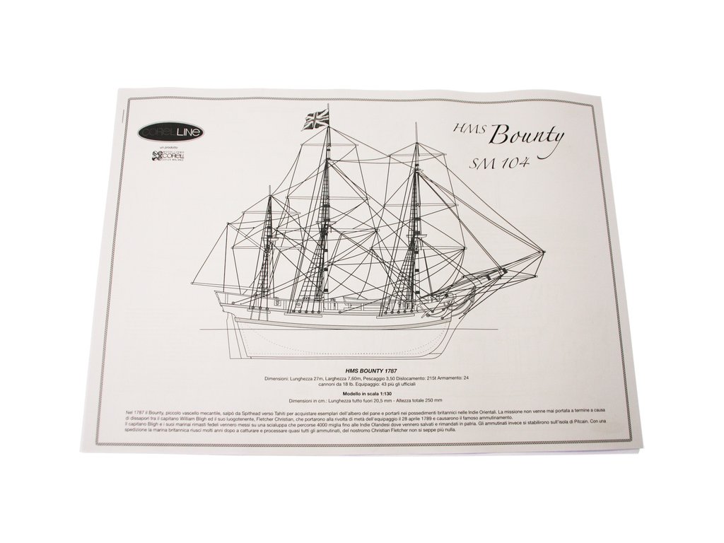 Stavebnice neplovoucího modelu COREL H.M.S. Bounty 1:130 z roku 1787. Jedna z nejznámějších lodí, díky vzpouře posádky proti kapitánovi. Ten byl s 18 věrnými členy vysazen na moře v záchranném člunu. V balení jsou dřevěné díly, lišty a množství kování, příslušenství, velké stavební plány v měřítku 1:1 a mnoho perspektivních výkresů usnadňují montáž. Určeno pro zkušenější modeláře.