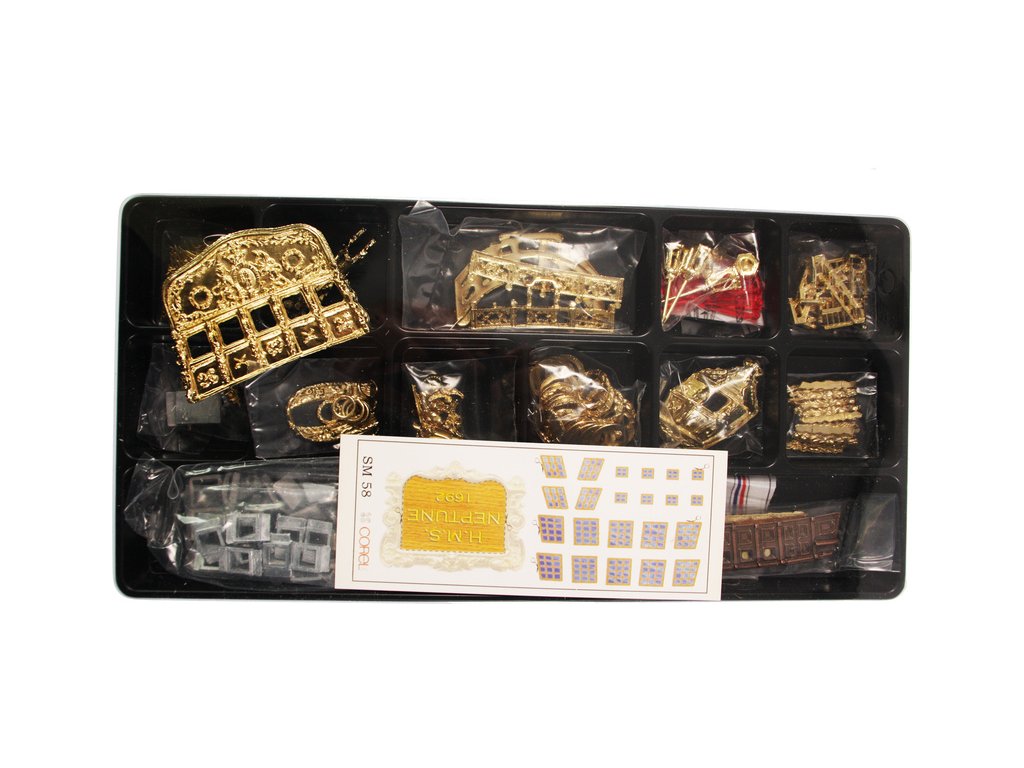 Neplovoucí model COREL H.M.S. Neptune v měřítku 1:90 ze 17. století. V té době bylo jen několik lodí vybaveno tolika ozdobami jako Neptun. Silná výzbroj 58 děl je typická pro tuto dobu konfliktů s holandskou flotilou. Plán je velmi detailní, v balení jsou dřevěné díly, lišty a množství kování, lanoví, plátno na plachty a další.