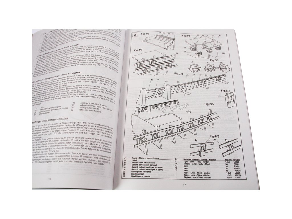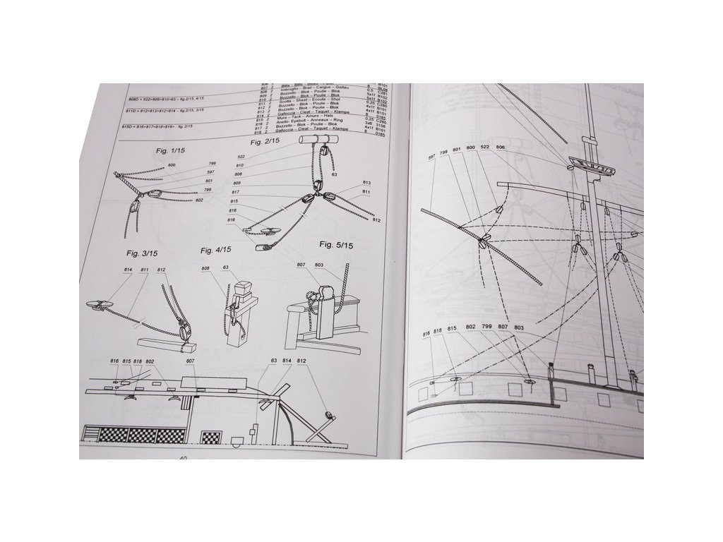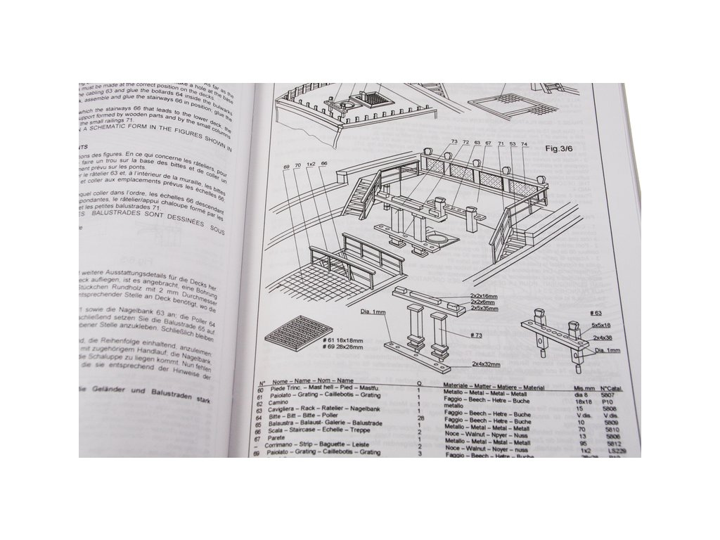 Set obsahuje kompletní sadu výkresové dokumentace modelu v měřítku 1:1 s postupem stavby, na výkrese jsou pečlivě označeny díly a je zde i seznam jednotlivých součástí modelu.