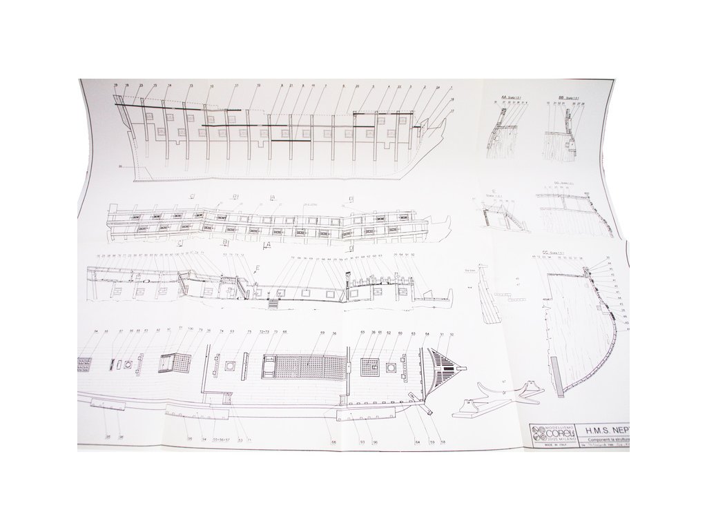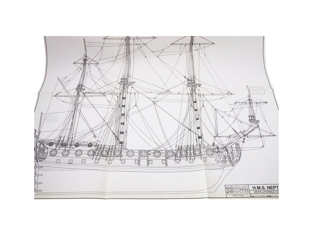 Neplovoucí model COREL H.M.S. Neptune v měřítku 1:90 je příkladem anglické konstrukční školy 17. století. V té době bylo jen několik lodí vybaveno tolika ozdobami jako Neptun. Jejich silná výzbroj celkem 58 kanónů je typická pro tuto dobu plnou četných vojenských konfliktů s holandskou flotilou. Plán je velmi detailní, v balení jsou dřevěné díly, lišty a množství kování, lanoví, plátno na plachty a další.