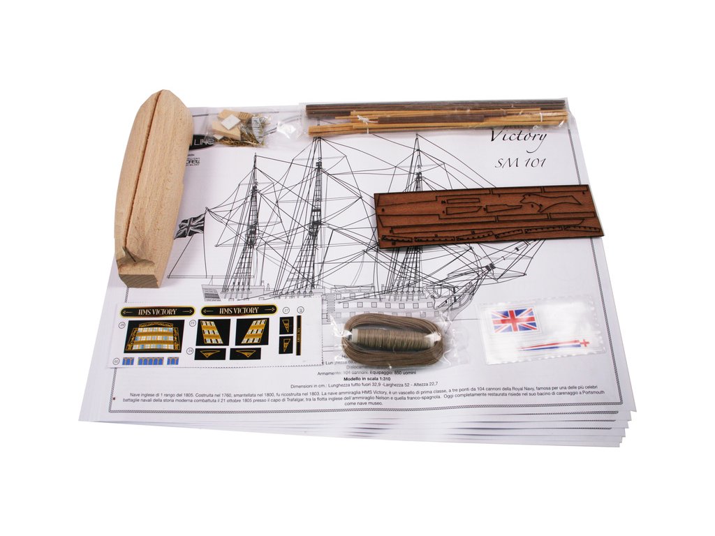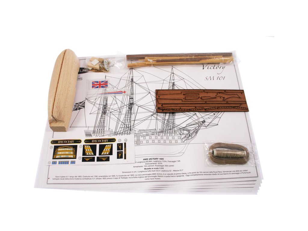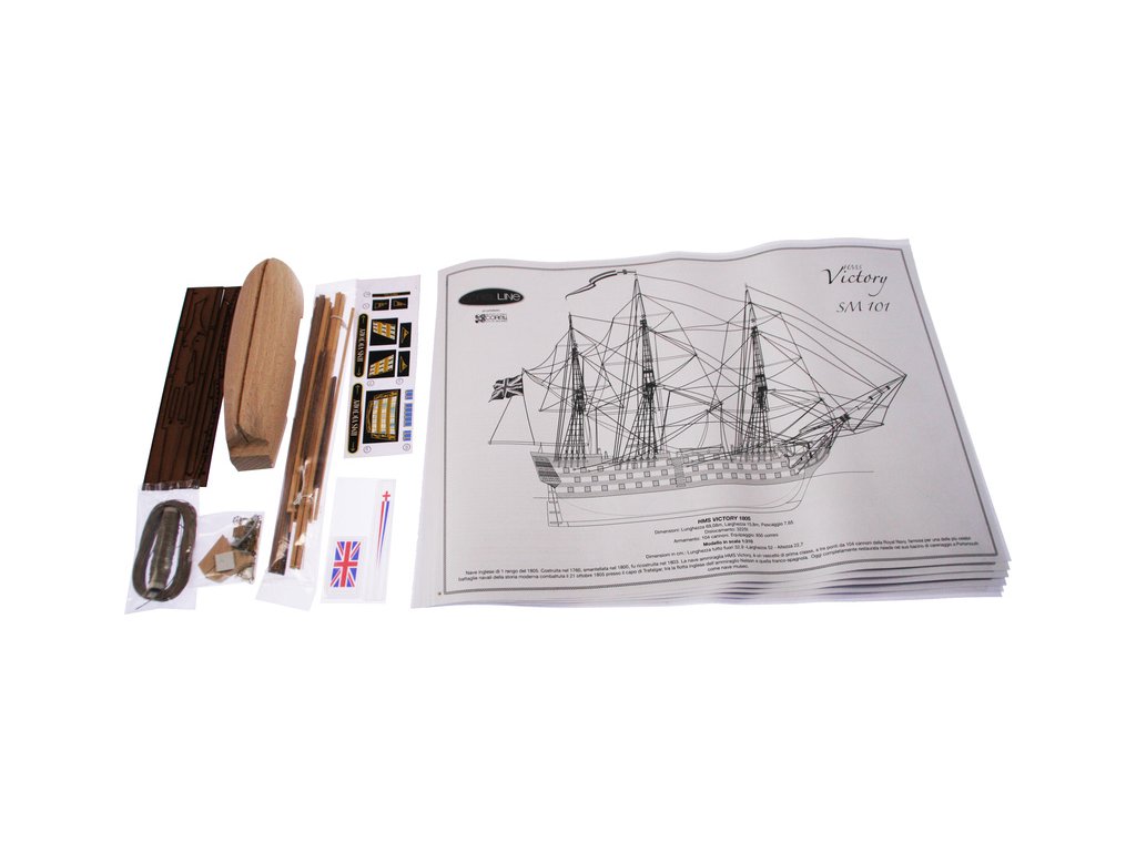 Stavebnice neplovoucího modelu COREL H.M.S. Victory v měřítku 1:310 z roku 1805. Stavebnice slavné HMS Victory, vlajkové lodě Admirála Nelsona v bitvě u Trafalgaru v roce 1805. V balení jsou dřevěné díly, lišty a množství kování, příslušenství, velké stavební plány v měřítku 1: 1 a mnoho perspektivních výkresů usnadňují montáž. Určeno pro zkušené modeláře.