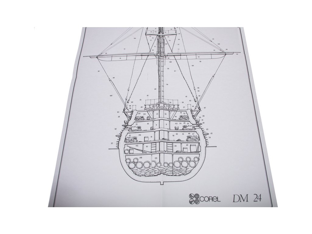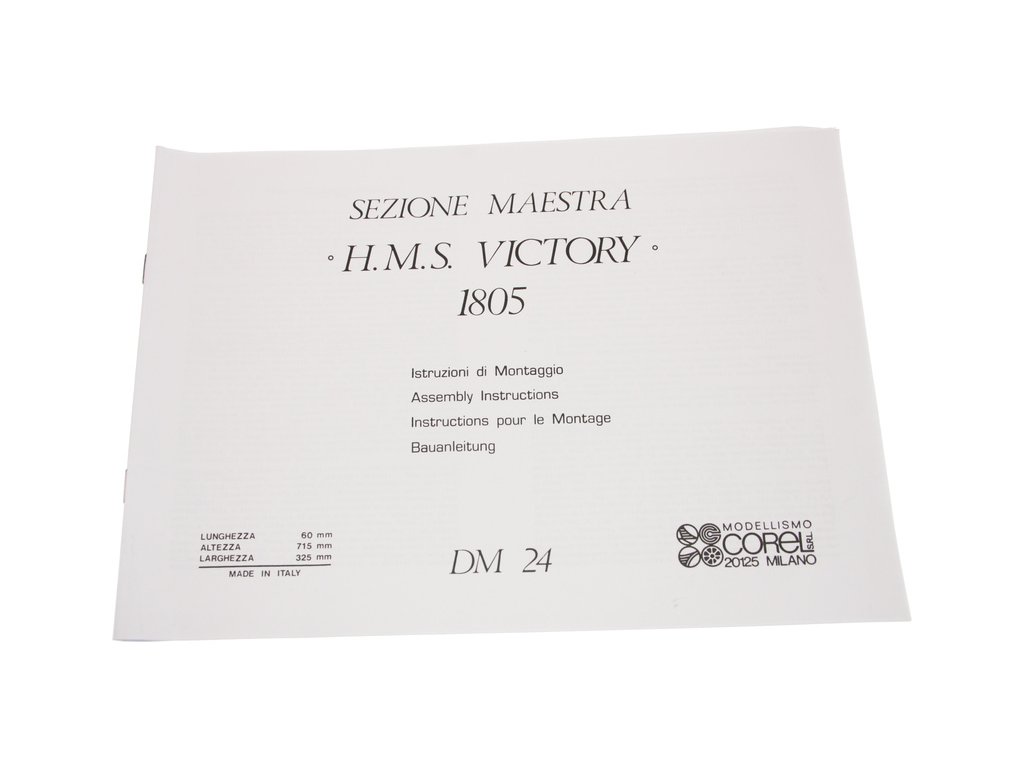 Stavebnice dekorace modelu COREL Victory v měřítku 1:98 z roku 1651. Model řezu trupu lodě Victory s 5 palubami a 6 děly, stožárem a lanovím je ideální dekorace do místnosti. Obsahuje dvě poloviny trupu z lepeného dřeva, které zjednodušují konstrukci trupu, materiály a veškeré příslušenství a vybavení z mosazi a vzácného dřeva