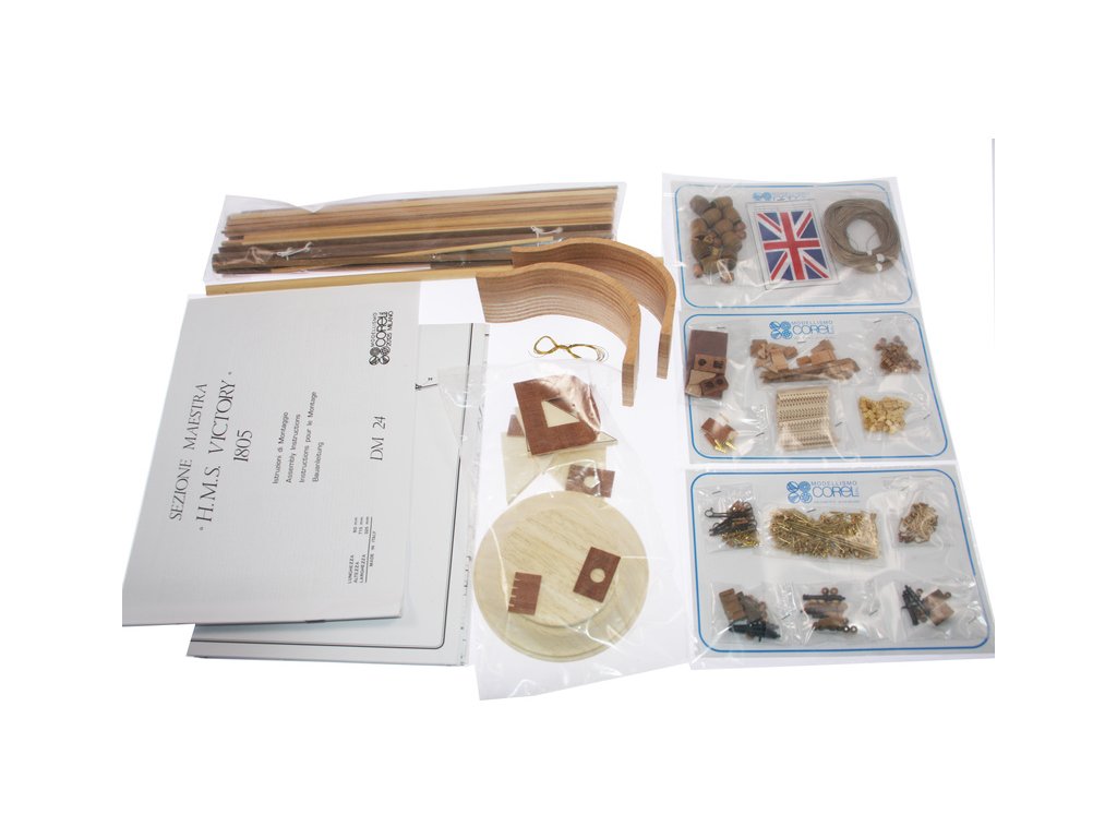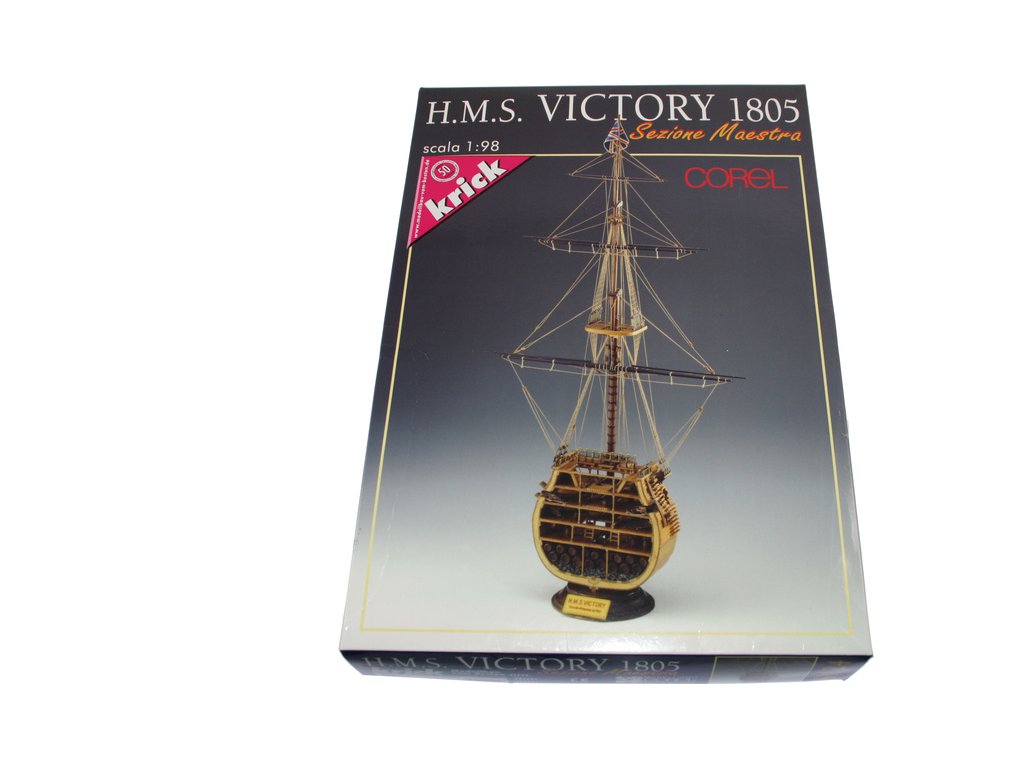 Stavebnice dekorace modelu COREL Victory v měřítku 1:98 z roku 1651. Model řezu trupu lodě Victory s 5 palubami a 6 děly, stožárem a lanovím je ideální dekorace do místnosti. Obsahuje dvě poloviny trupu z lepeného dřeva, které výrazně zjednodušují konstrukci trupu, materiály a veškeré příslušenství a vybavení z mosazi a vzácného dřeva