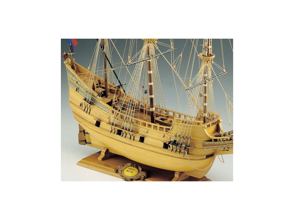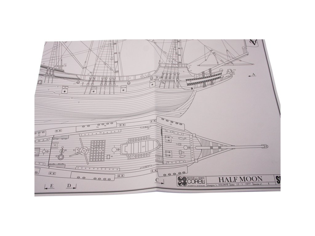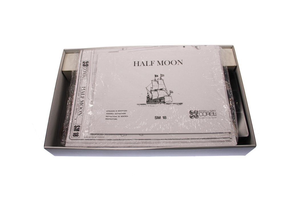 Stavebnice neplovoucího modelu COREL Half Moon v měřítku 1:50 z roku 1609. Tato loď proslavila holandského kapitána Hudsona z Halve Maen, který nalezl velkou zátoku na východním pobřeží Ameriky kde bylo založeno město později New York. V balení jsou dřevěné díly, lišty a množství kování, lanoví, plátno na plachty, plány atd.