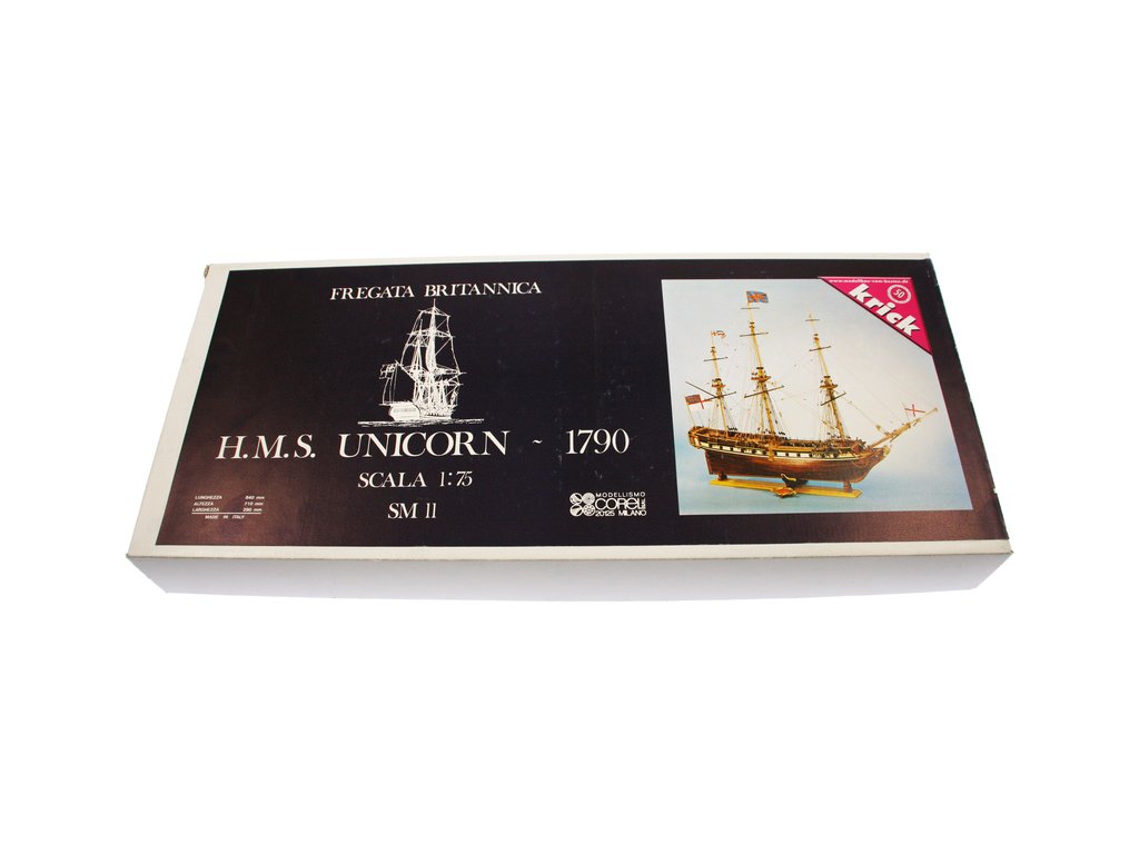 Corel stavebnice historického modelu lodi pro zručné modeláře od firmy KRICK, HMS Unicorn kit v měřítku 1:75 patří ke skvostům ve sbírce každého lodního modeláře. Štíhlý trup s impozantním lanovím dodává modelu na eleganci. Unicom byl vyzbrojen 32 zbraněmi, z toho 24 na dělové palubě a 8 na horní palubě. Loď byla vyrobena v loděnici Frederika Chapmana pro britské námořnictvo.