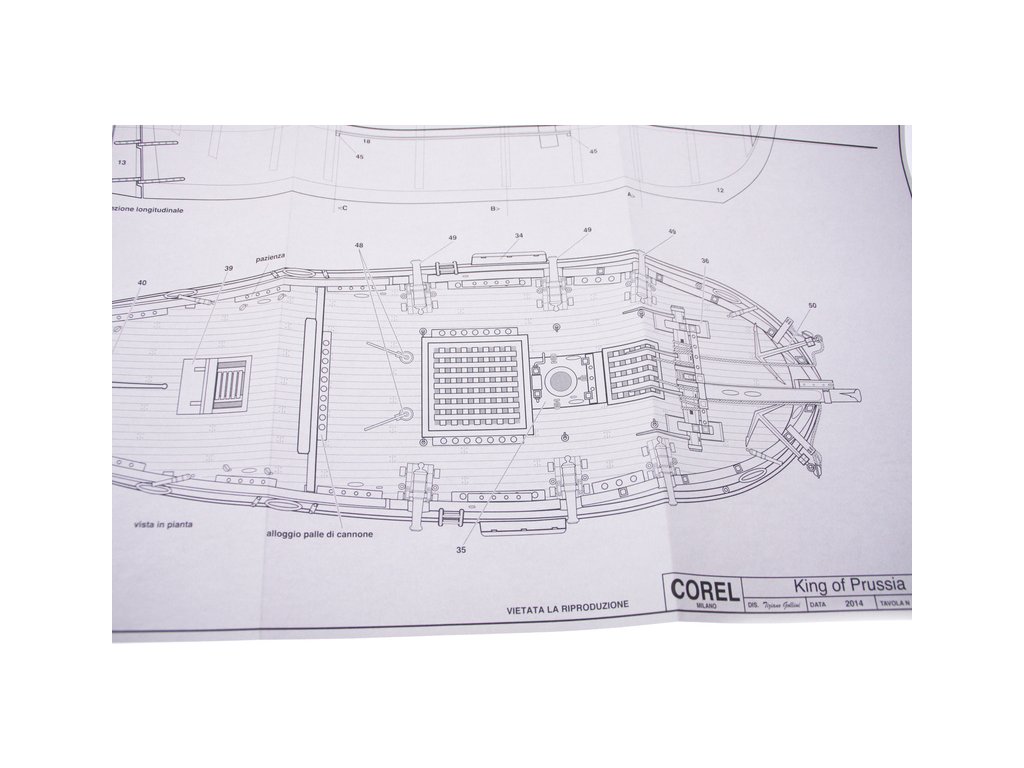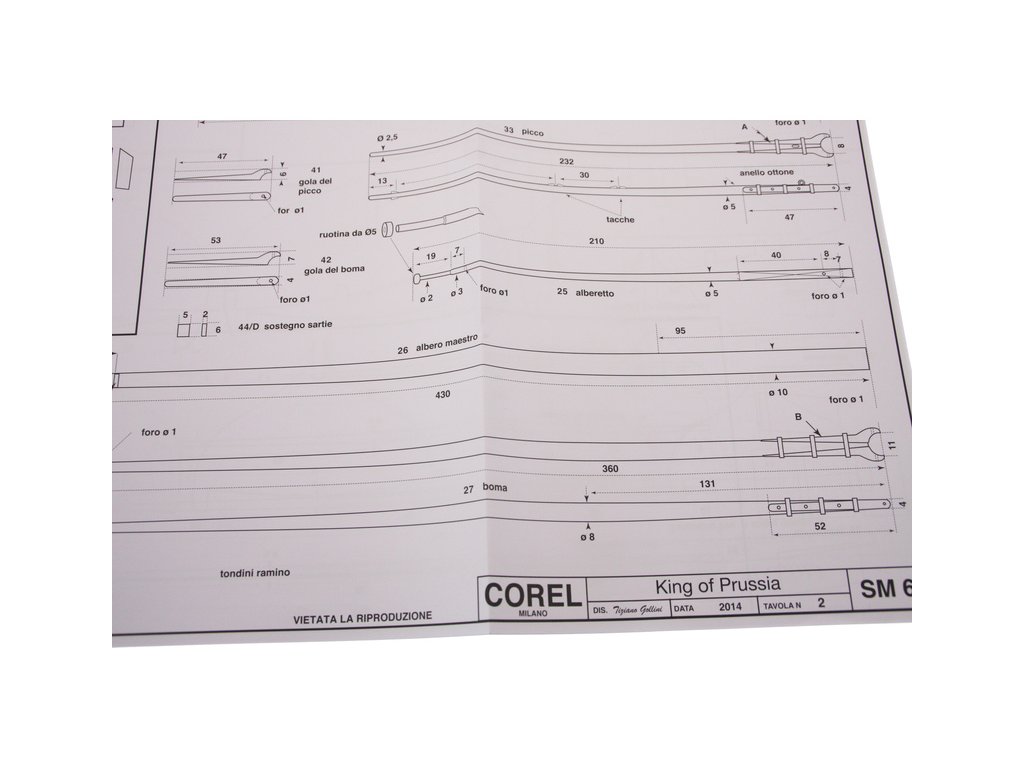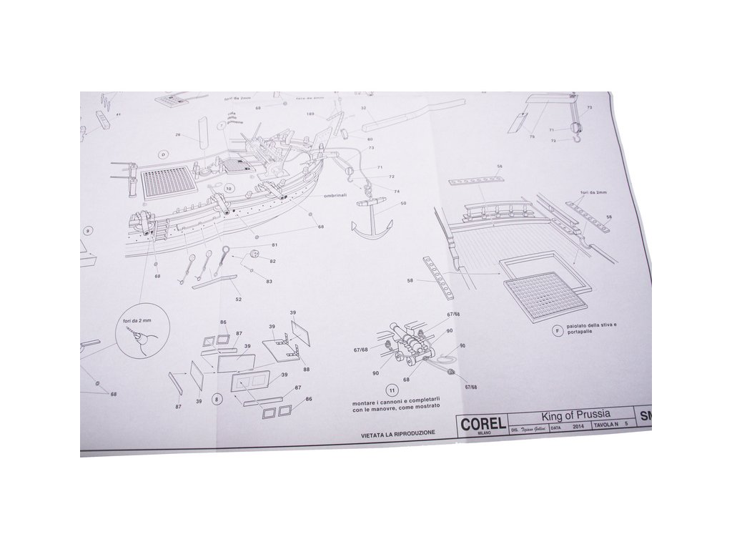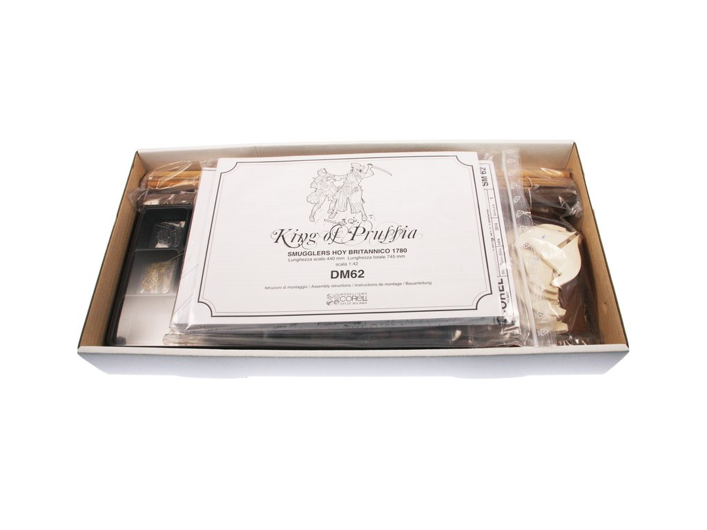 Stavebnice neplovoucího modelu COREL King of Prussia v měřítku 1:42 z roku 1777. Král Pruska byla lodí, se kterou se slavný pašerák John Carter plavil po vodách jižní Anglie. Loď byla vyrobena z lehké borovice, byla velmi rychlá a malý ponor. V balení jsou dřevěné díly, lišty a množství kování, lanoví, plátno na plachty a další.