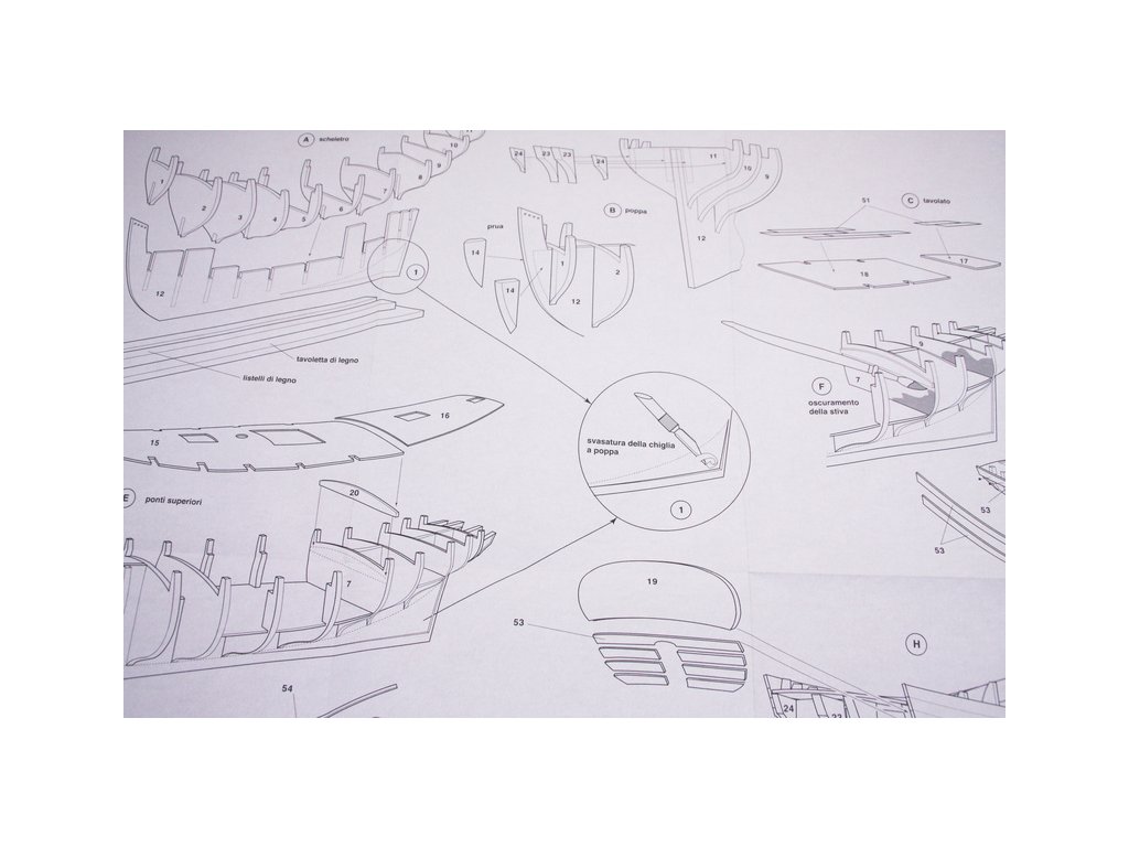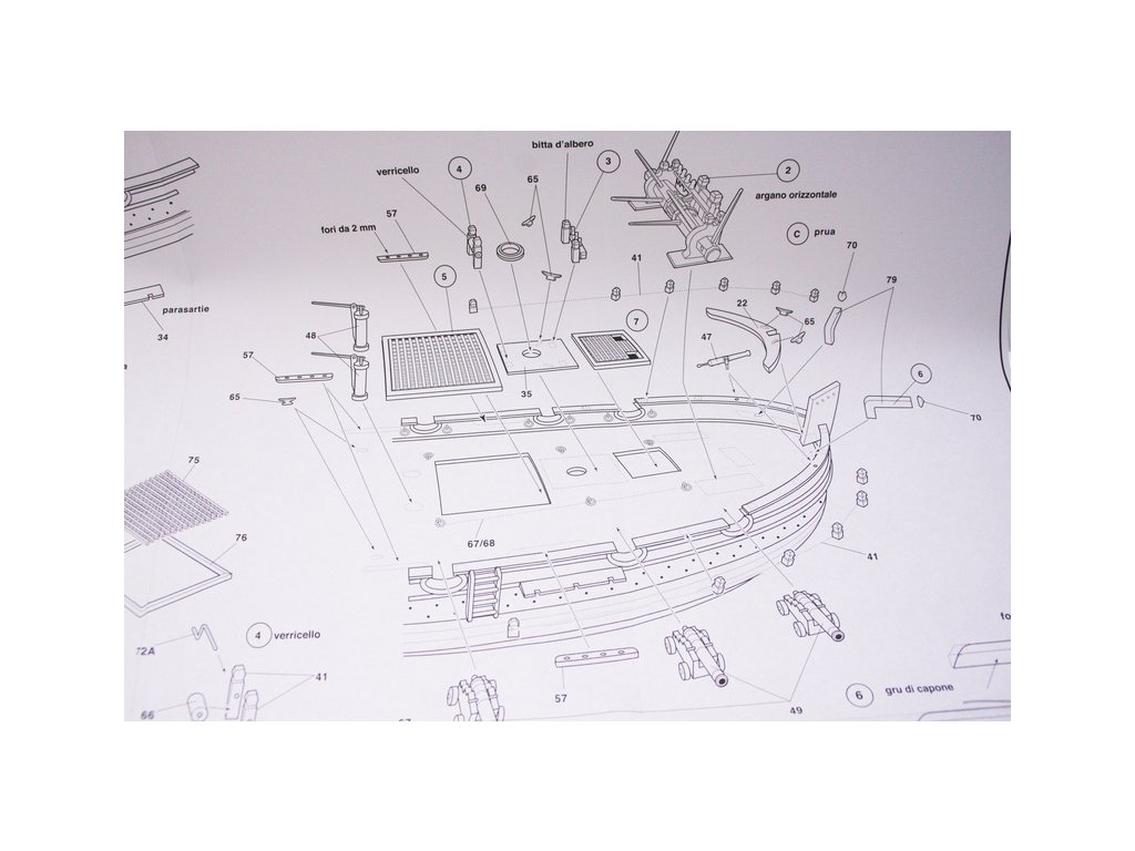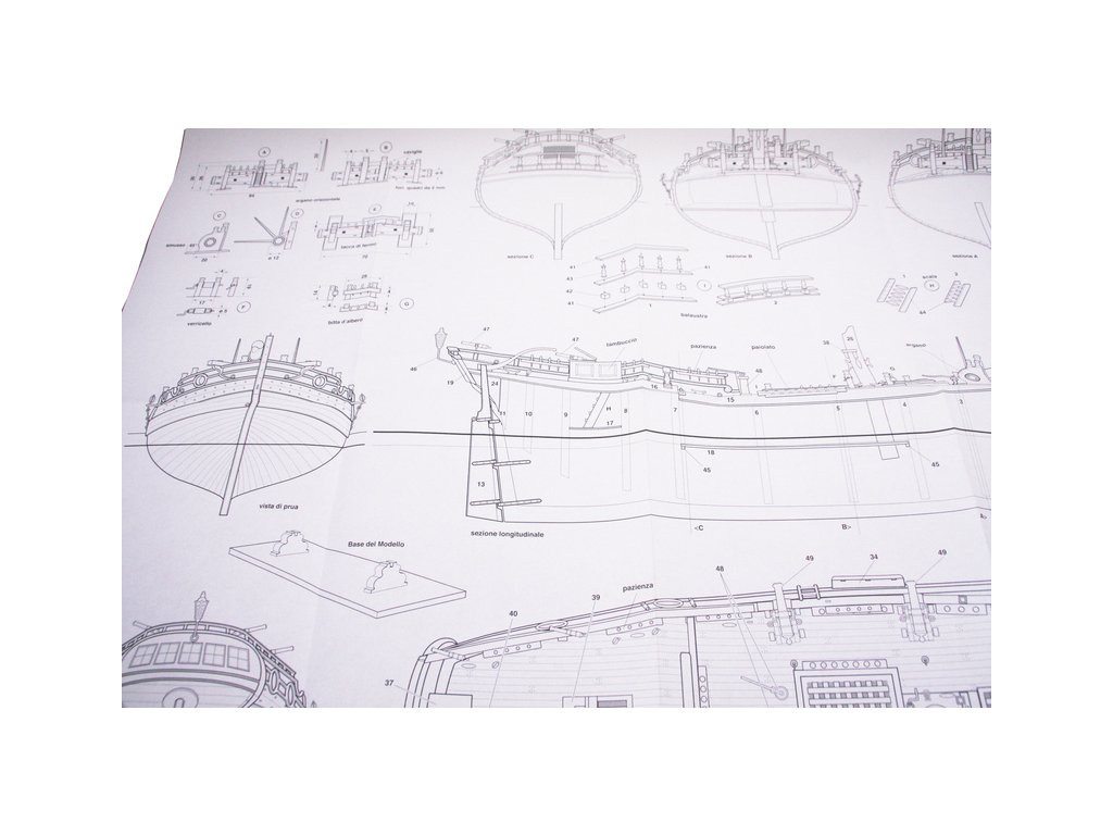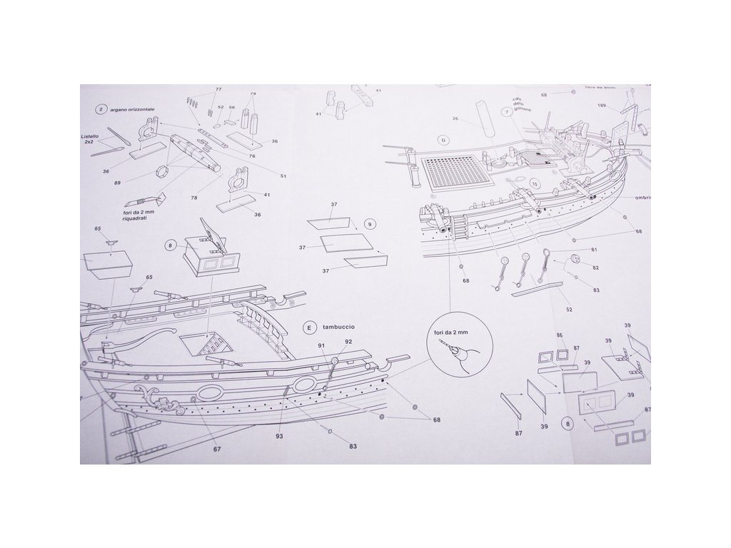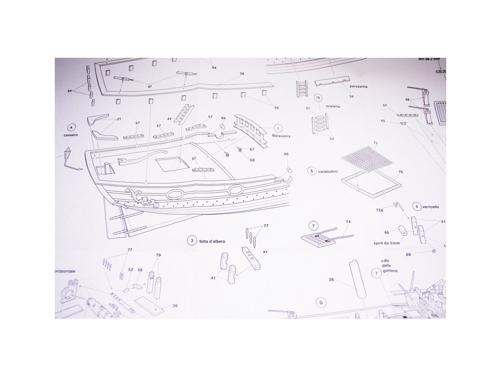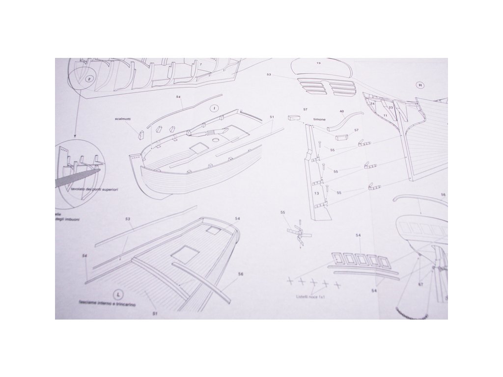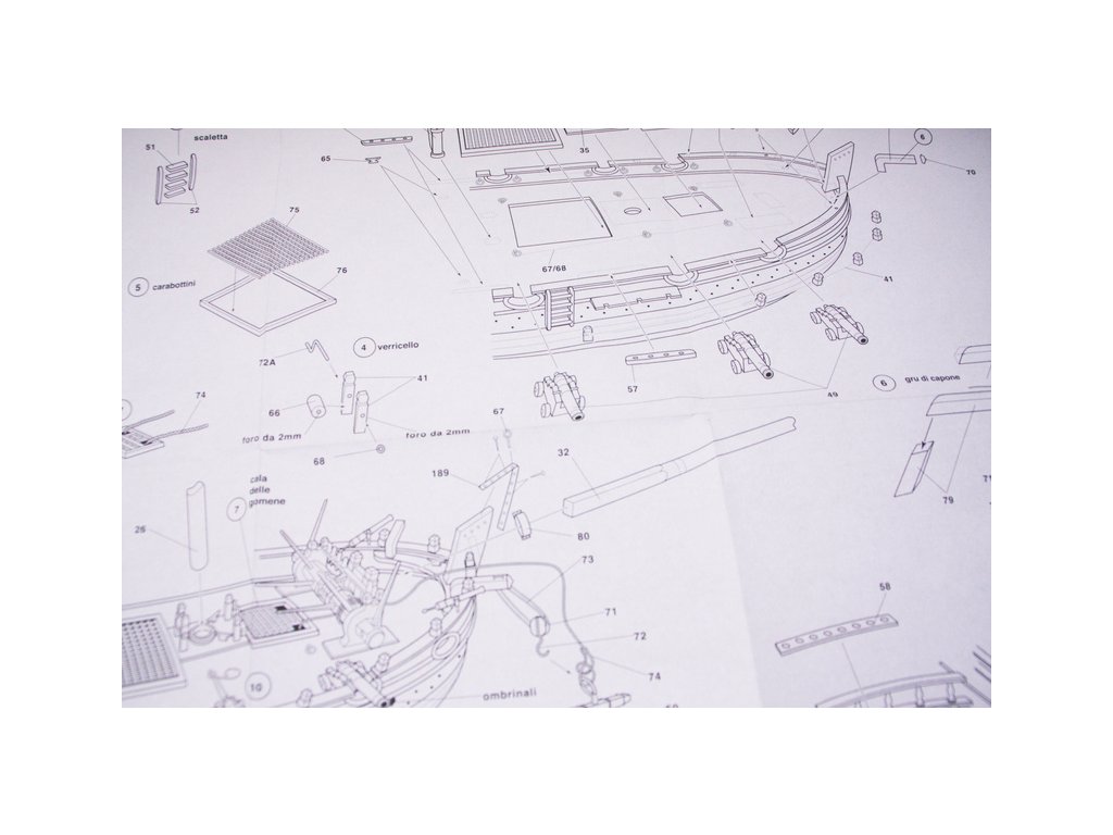 Set obsahuje kompletní obsáhlou sadu výkresové dokumentace s postupem stavby, na výkrese jsou pečlivě označeny díly a je zde i seznam jednotlivých součástí modelu.