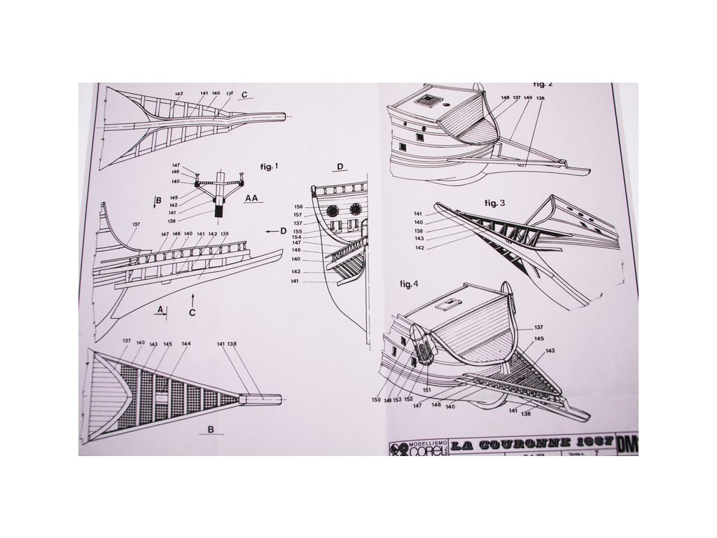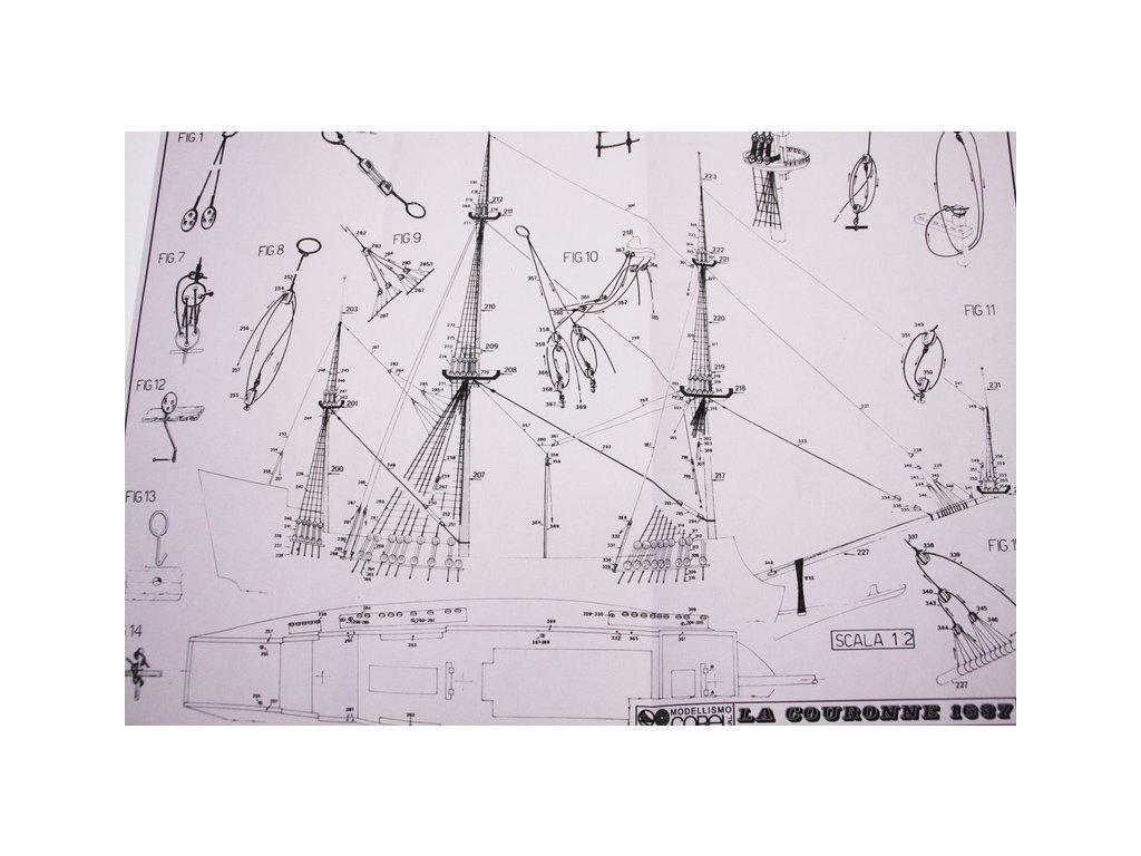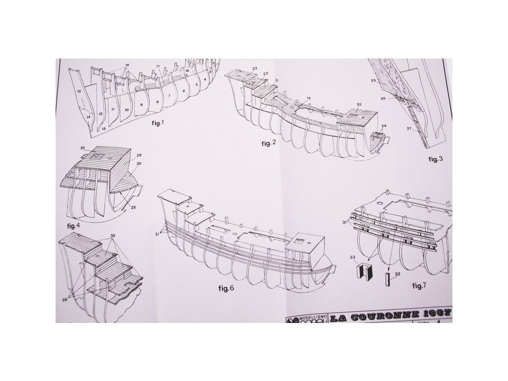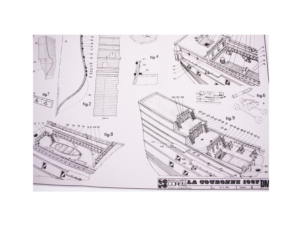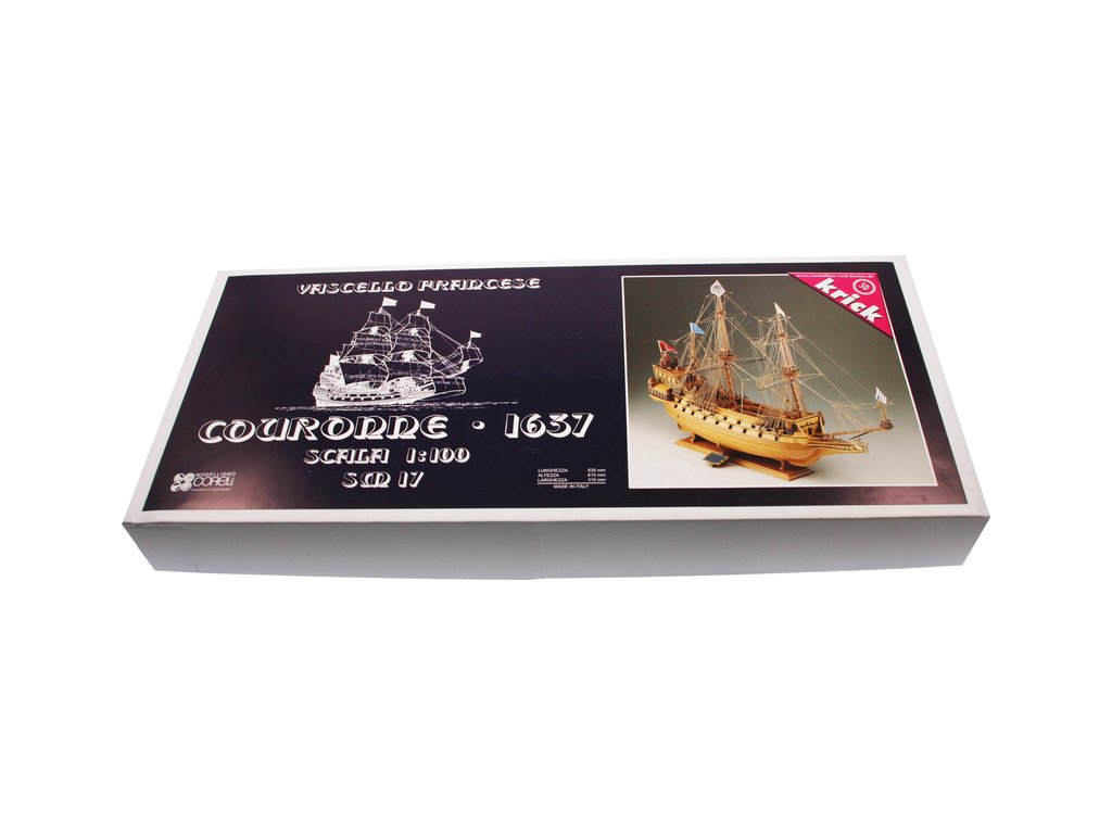 Stavebnice neplovoucího modelu COREL La Couronne v měřítku 1:100 z roku 1636. Kardinálu Richelieu se podařilo sjednotit konkurenční přístavní města Francie a připravit loďařský program jako přípravu na střet s Angličany a Španěly. Výsledkem byla velká loď s mohutnou výzbrojí 72 děl a až 600 mužů posádky. Přes obavy byla Couronne překvapivě dobře manévrovatelná. V balení jsou dřevěné díly, lišty a množství kování, příslušenství, velké stavební plány v měřítku 1: 1 a mnoho perspektivních výkresů usnadňují montáž. Určeno pro zkušené modeláře.