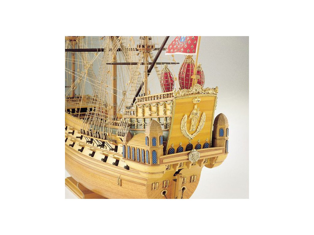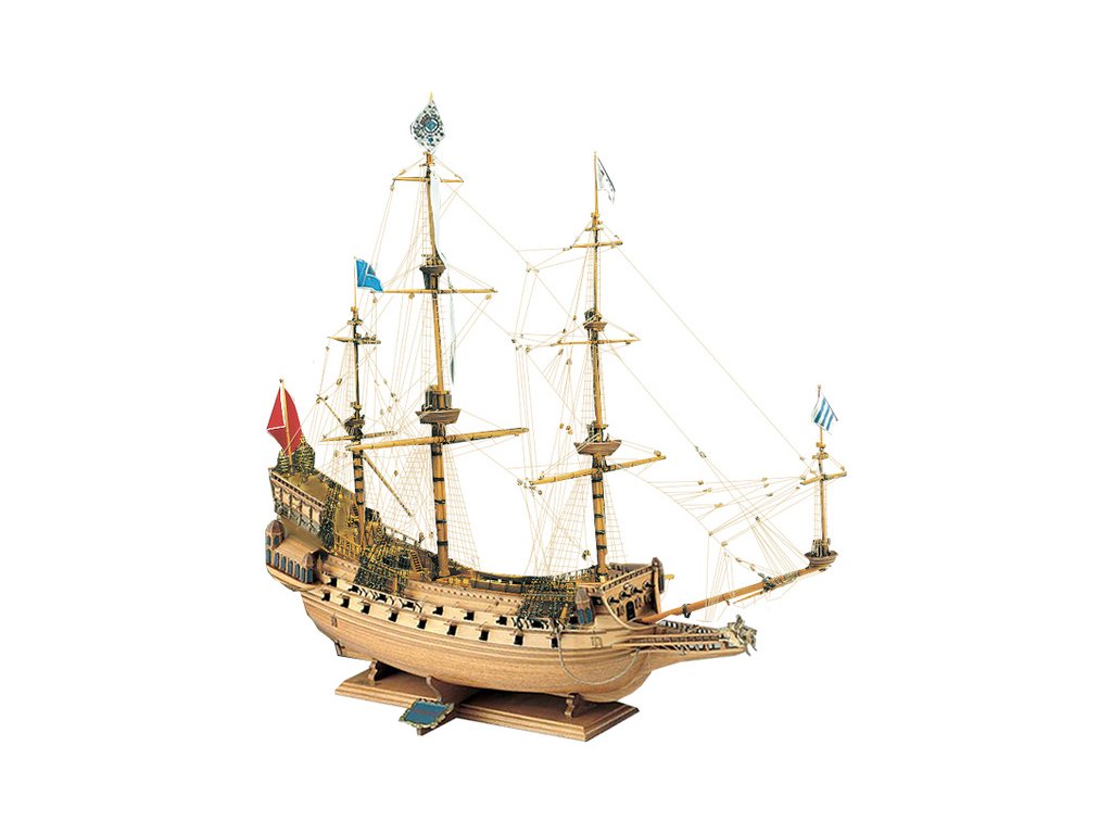 Rozsáhlá stavebnice velké neplovoucí makety historické lodi pro náročné modeláře. Krásná a velká loď La Couronne v měřítku 1:100 z roku 1636 má délku 805mm, proto jde zpracovat velmi podrobně. V plastovém blistru najdete ohromné množství maketových dřevěných i kovových prvků, zpracovaných do nejmenších detailů, které přímo použijete při stavbě. Řada výkresů v měříktu 1:1 vám umožní porovnávat vyráběné díly s výkresy a docílit tak vysoké přesnosti. Maketa je velmi pracná, není určena pro začátečníky.