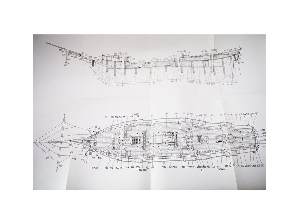 Set obsahuje kompletní sadu výkresové dokumentace modelu v měřítku 1:1 s postupem stavby, na výkrese jsou pečlivě označeny díly a je zde i seznam jednotlivých součástí modelu.