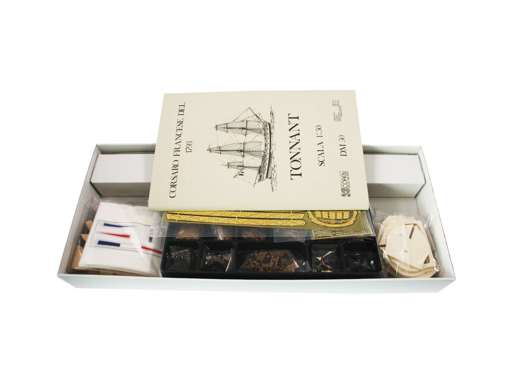 Neplovoucí dřevěný model lodi COREL Le Tonnant 1:50 je stavebnice korzárské lodi z 18 století, která byla navržena podle starých dokumentů. Plán je velmi detailní a obsahuje množství výkresů. V balení jsou laserem řezané dřevěné díly, lišty a množství kování, lanoví, plátno na plachty, spousta příslušenství a dekorace.