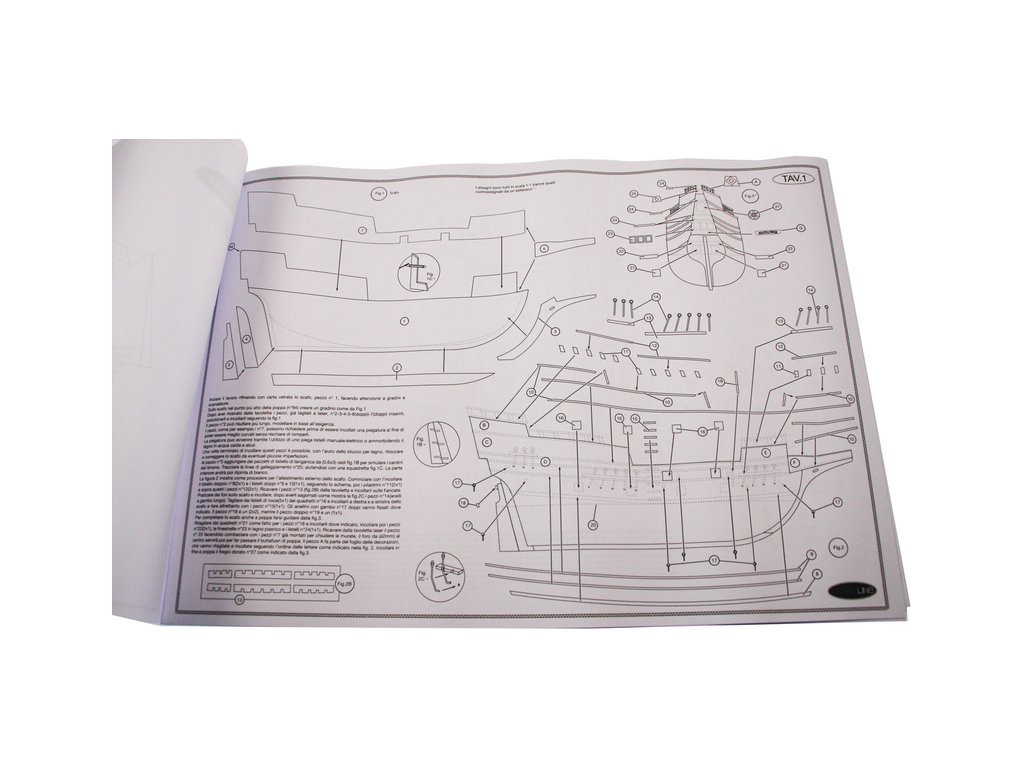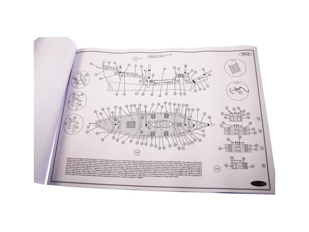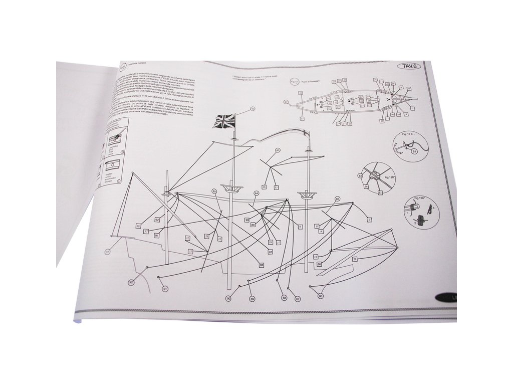 Set obsahuje kompletní sadu výkresové dokumentace modelu v měřítku 1:1 s postupem stavby, na výkrese jsou pečlivě označeny díly a je zde i seznam jednotlivých součástí modelu.