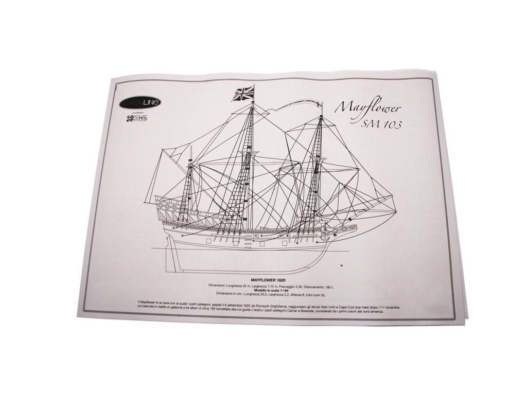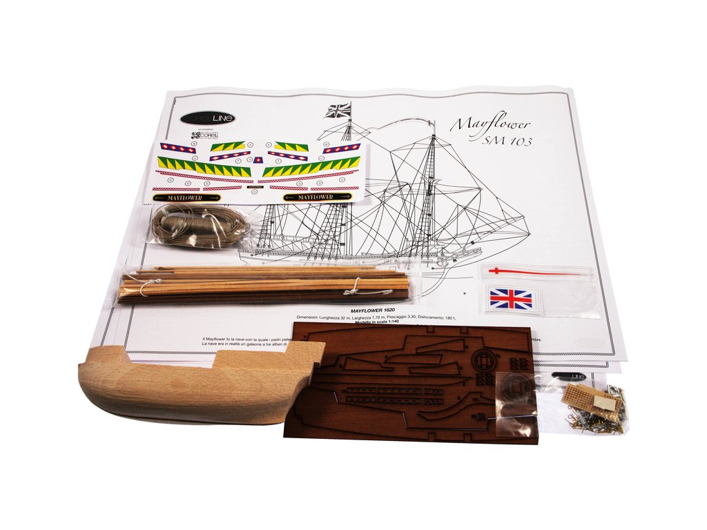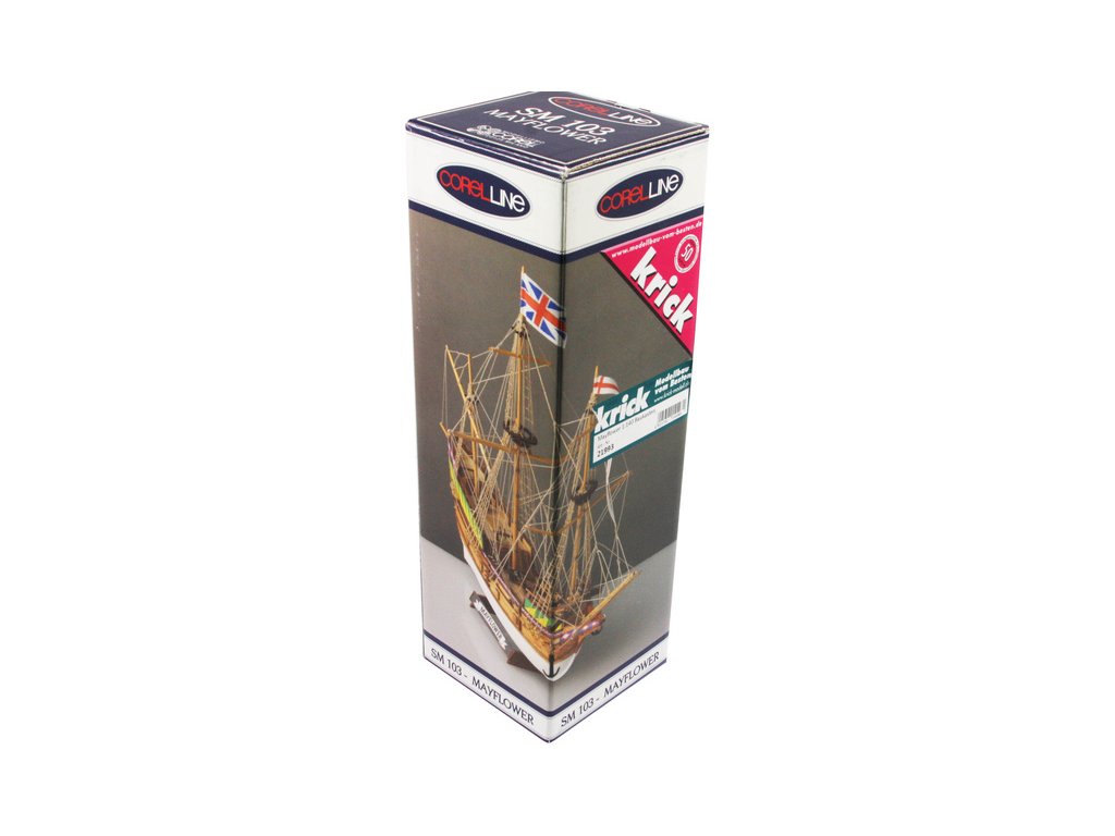 Stavebnice neplovoucího modelu COREL Mayflower v měřítku 1:140 z roku 1609. Mayflower posloužila anglickým puritánům, na cestě do nového světa v roce 1620. V balení jsou dřevěné díly, lišty a množství kování, příslušenství, velké stavební plány v měřítku 1: 1 a mnoho perspektivních výkresů usnadňují montáž. Určeno i pro méně zkušené modeláře.