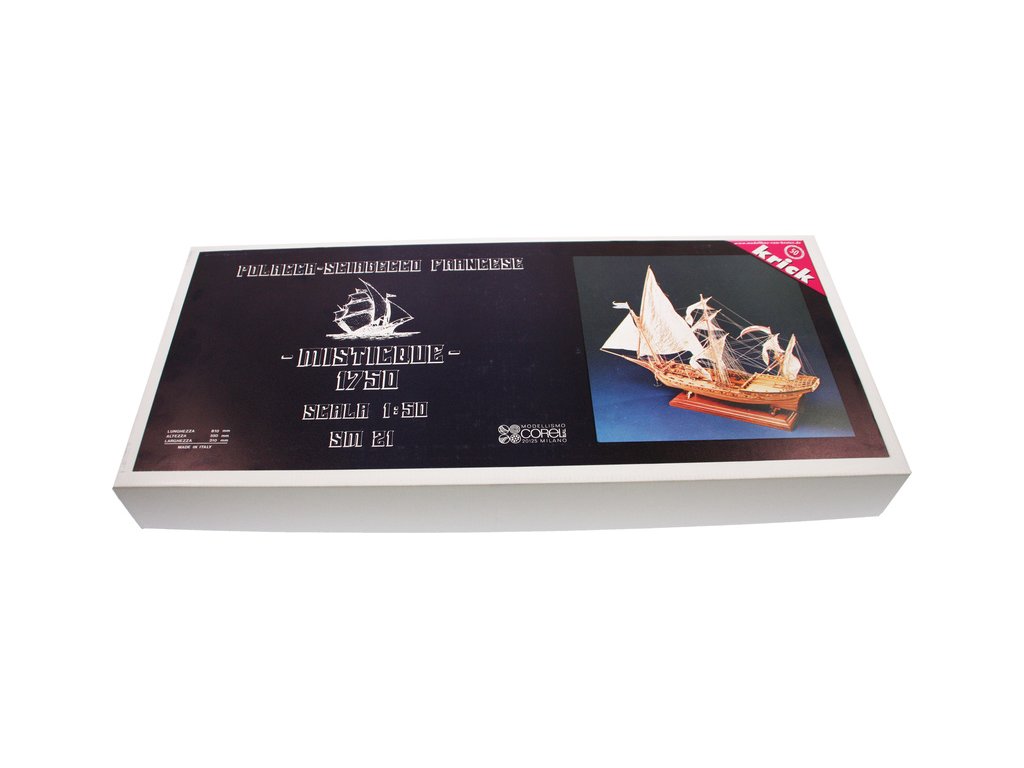Stavebnice neplovoucího modelu COREL Mistique v měřítku 1:50 z 18. stol. Loď třídy Polacker do které patřil Mistique, byly charakteistické 3-stěžňovým uspořádáním. I když byl postaven jako obchodní loď, byl Misticque vyzbrojen 18 děly. V balení jsou dřevěné díly, lišty a množství kování, lanoví, plátno na plachty, plány atd.