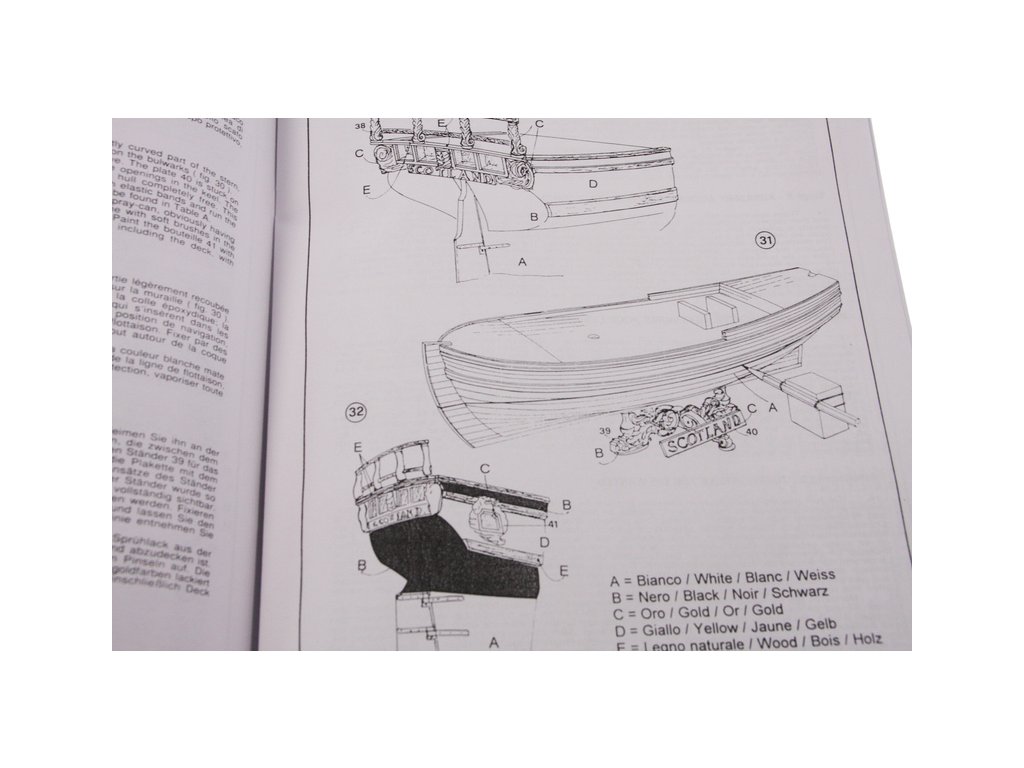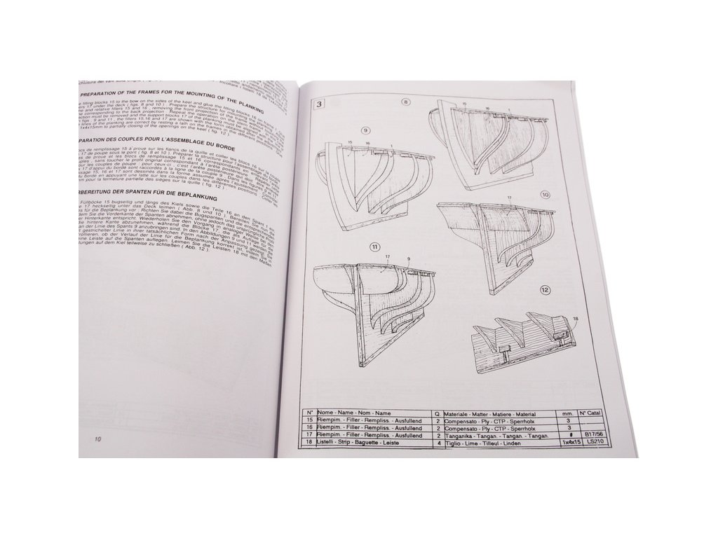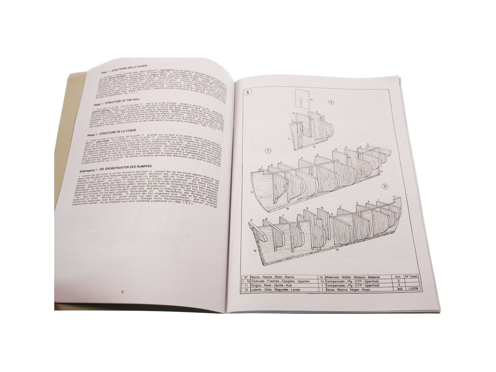 Balení obsahuje sadu překližkových dílů, sadu dřevěných lišt o různém průřezu, blistr s drobnými díly, díly z mosazi, český návod ke stavbě, vícejazyčný manuál s obrázky a výkresy.