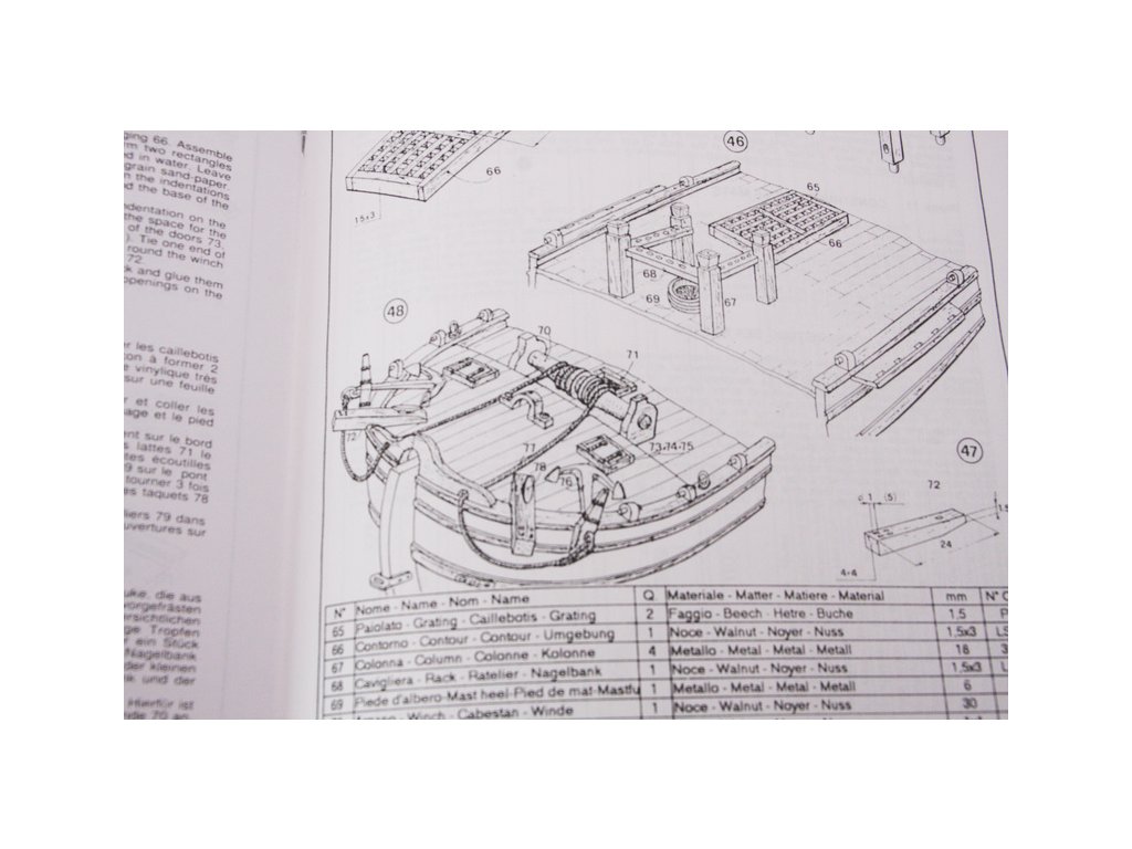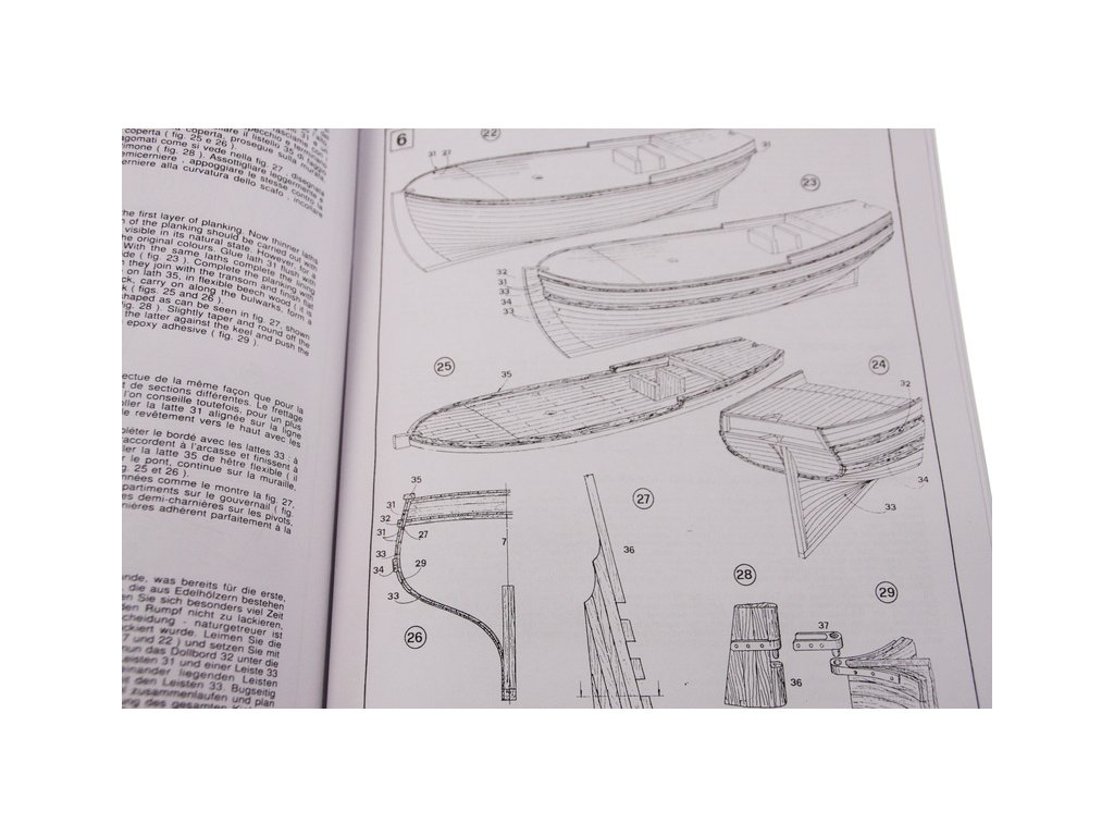 Po otevření víka krabice naleznete dřevěné díly modelu z překližky, sadu lišt, drobné součásti uzavřené v plastovém průhledném blistru, český návod ke stavbě, vícejazyčný manuál s obrázky a výkresy.