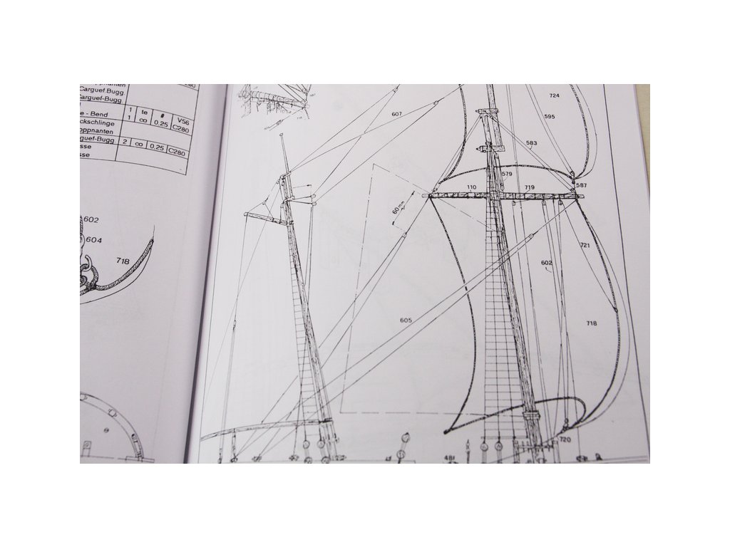 Set obsahuje kompletní sadu výkresové dokumentace modelu v měřítku 1:1 s postupem stavby, na výkrese jsou pečlivě označeny díly a je zde i seznam jednotlivých součástí modelu.