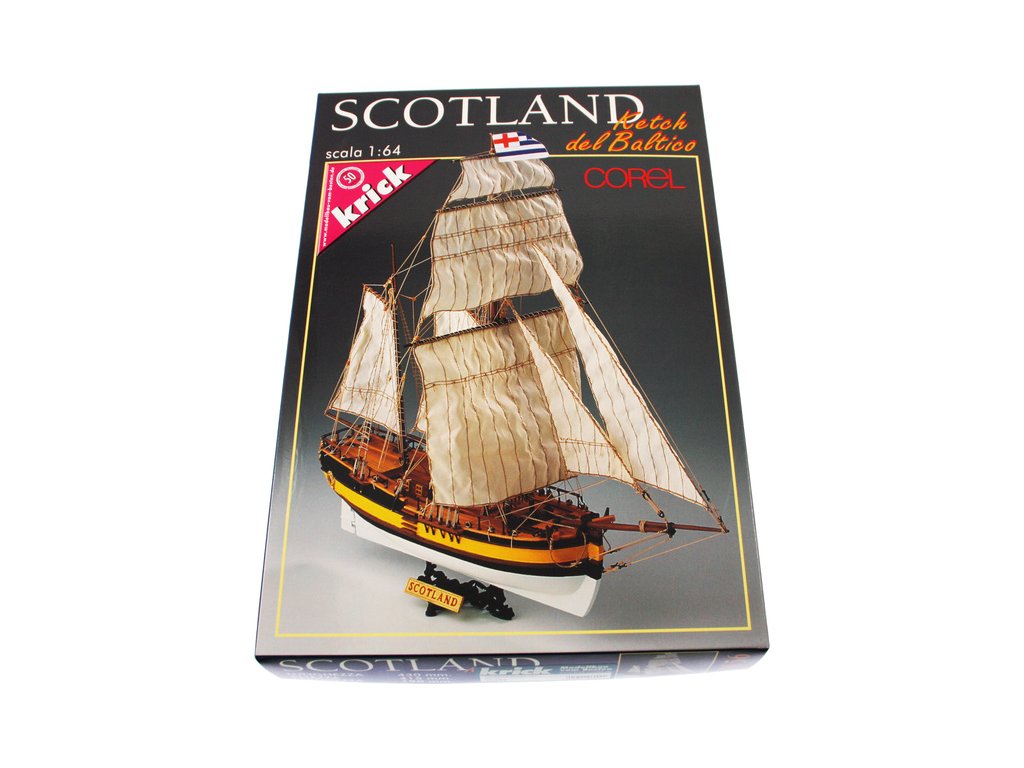 Neplovoucí model COREL Scotland v měřítku 1:64 je stavebnicí historické skotské lodi z 18. století a patří do třídy ketchových jachet. Používala se hlavně pro přepravu zboží v oblasti Baltského moře a v pobaltských státech. Český manuál. V balení jsou dřevěné díly, lišty a množství kování, lanoví, plátno na plachty a další.