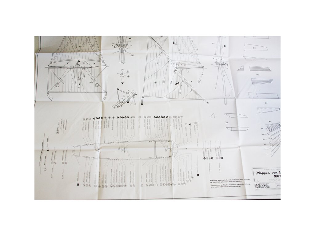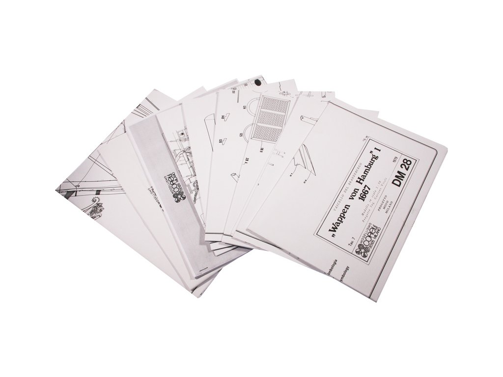 Set obsahuje kompletní sadu výkresové dokumentace modelu v měřítku 1:1 s postupem stavby, na výkrese jsou pečlivě označeny díly a je zde i seznam jednotlivých součástí modelu.