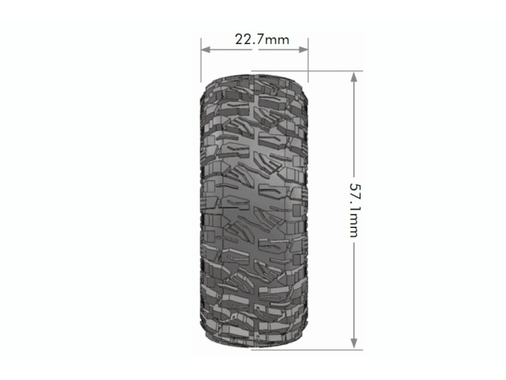 Kompletní kola pro crawler/expedice 1/18 s 1/24. Univerzální pneumatiky vhodné do sucha i do mokra, pro jakýkoliv povrch. Disky pro 7mm hex unašeče.