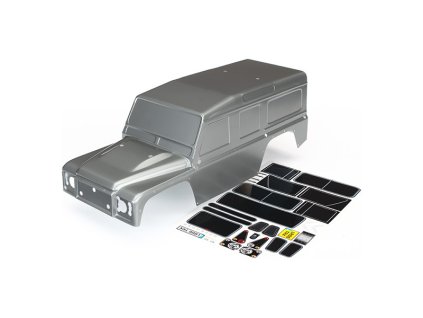 Náhradní díl pro RC modely aut Traxxas TRX-4: karosérie Land Rover Defender stříbrná. Pro rozvor náprav 324mm.