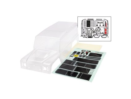 Traxxas karosérie Chevrolet Blazer 1979 čirá. Ořezaná, vyžaduje barvení. Včetně maketového příslušenství, masky oken a archu samolepek. Určeno pro šasi s rozvorem 312 mm.