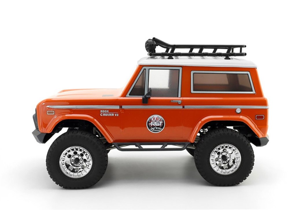 Karoserie RC4 V3-FD je ještě realističtější díky průhledným oknům, skrytým sloupkům karoserie, plastikovým nárazníkům, mřížce chladiče, zpětným zrcátkům, střešní zahrádce a dalším doplňkům. Navíc je vybavena předními i zadními světly a novými koly.