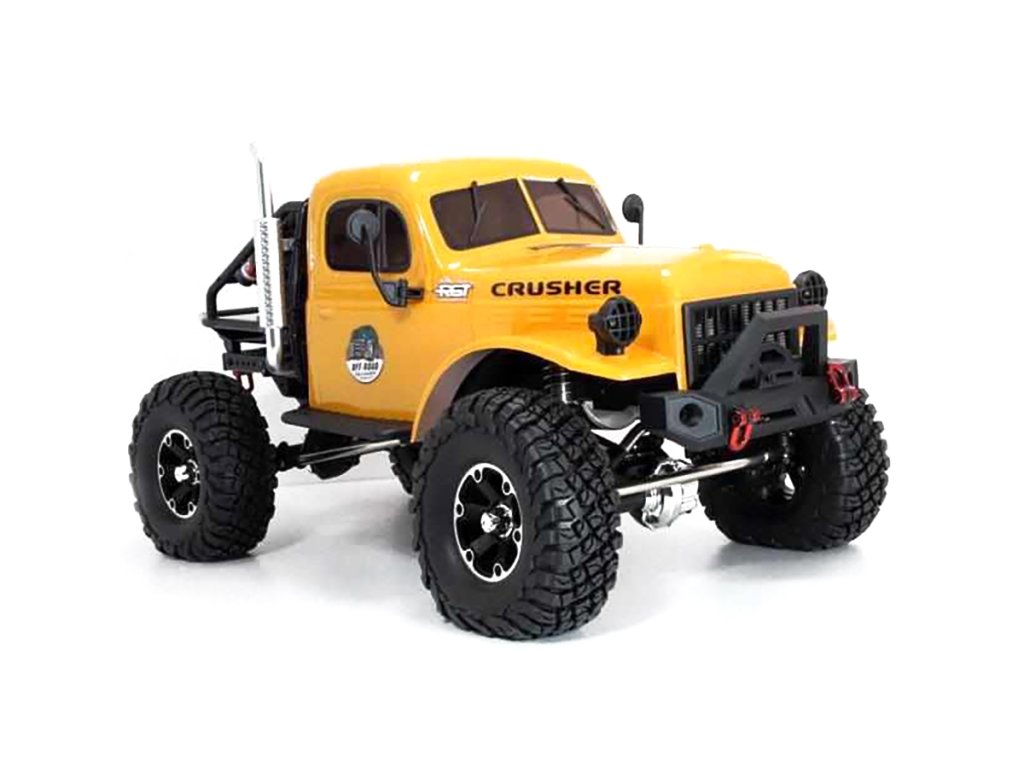 Crusher RTR set je vybaven silným stejnosměrným motorem RC550 17T se zvýšeným točivým momentem, voděodolným regulátorem HobbyWing WP-1060, 15kg voděodolným servem s kovovými převody a 4kanálovým rádiem s ovládáním LED světel.