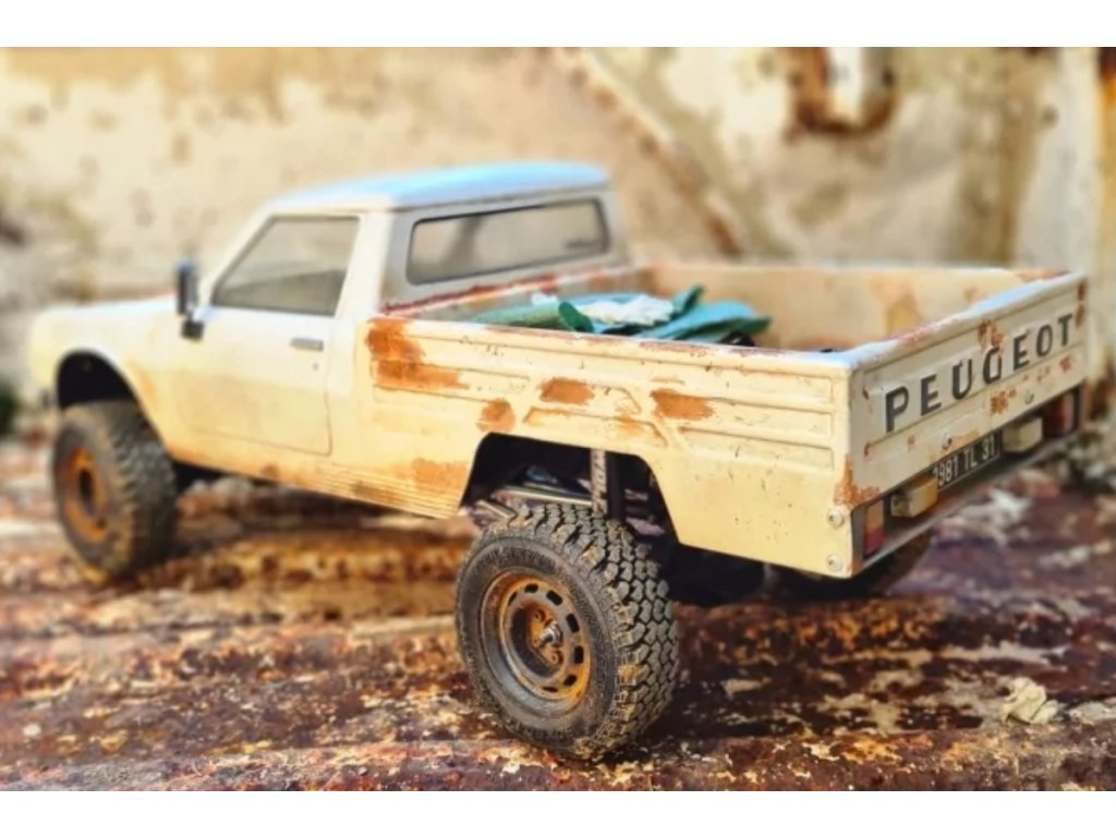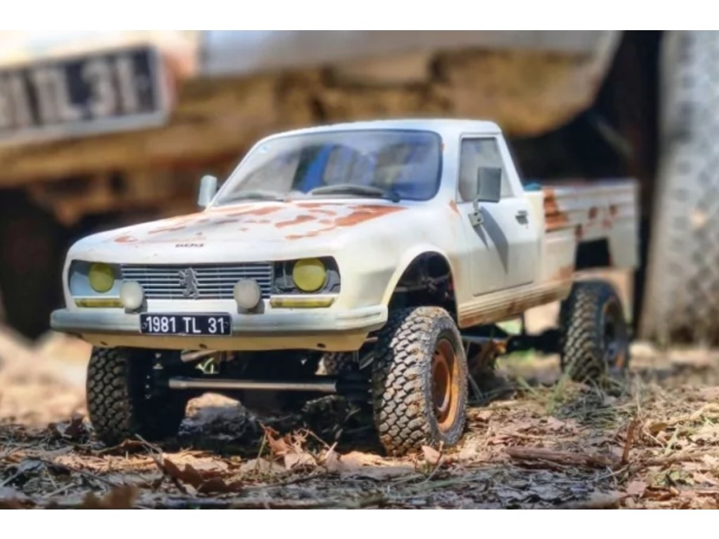 Hobbytech, francouzský konstruktér a výrobce rádiem řízených modelů aut, nabízí tuto licencovanou reprodukci karoserie pick-upu Peugeot 504. Součástí stavebnice je několik doplňků (blatníky, chrániče světlometů, samolepky), které vám umožní reprodukovat verzi podle vašeho výběru (tradiční 504 pick-up nebo verzi Dangel).