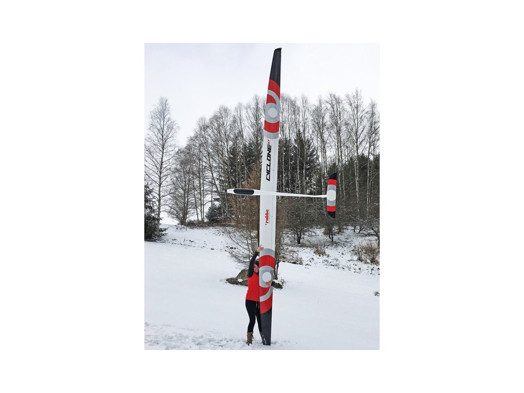 Obří RC model termického větroně na dálkové ovládání Cyclone XT PNP o rozpětí 6,2m, je vlajkovou lodí Robbe. Téměř hotový model s laminátovým 2-dílným trupem (slepí se) vyztuženým uhlíkem a kevlarem, a 4-dílným křídlem s výztuhami z uhlíku s vestavěnými zámky MultiLock. Laminátový trup, křídlo potaženo dýhou Abachi. Výkonný střídavý motor LS 6330-15 s vrtulí 20x8 a 50mm kuželem je určen pro napájení LiPol 8S a má dostatek výkonu pro razantní stoupání i pro start pomocí vozíku. Regulátor, RC souprava ani serva nejsou součástí balení!