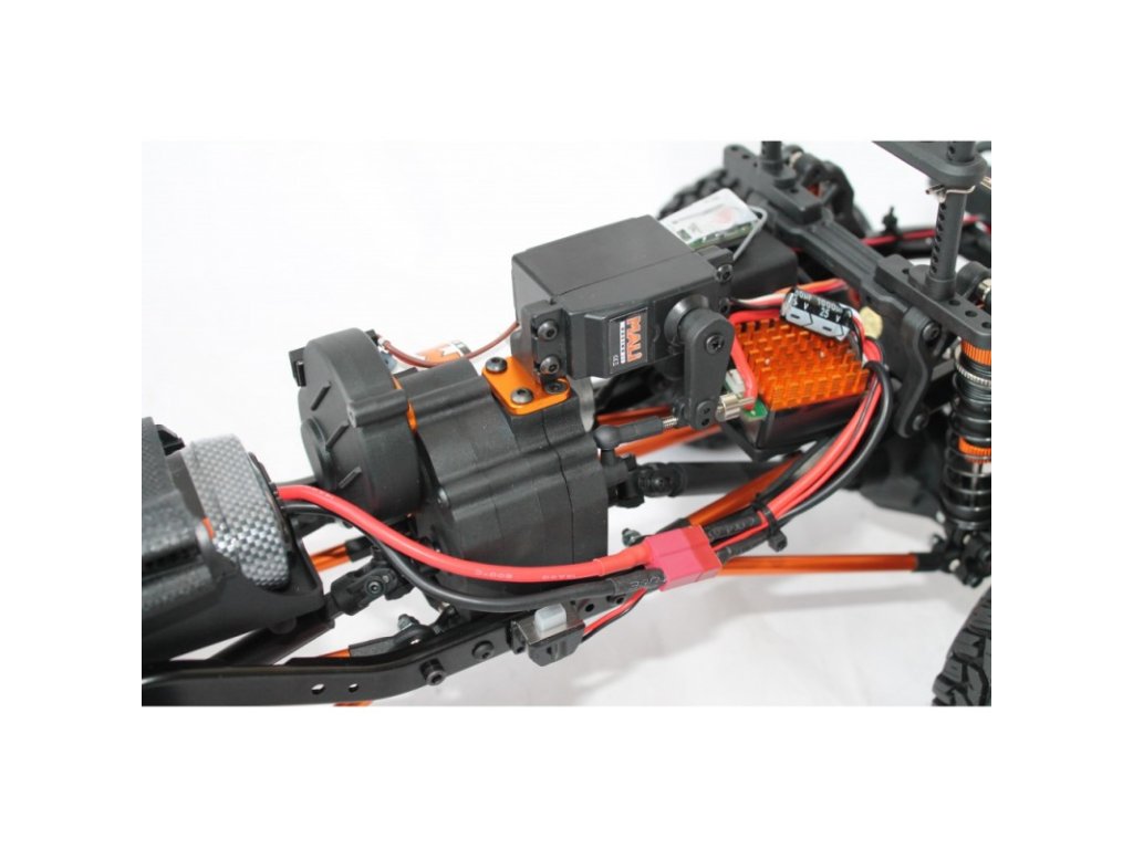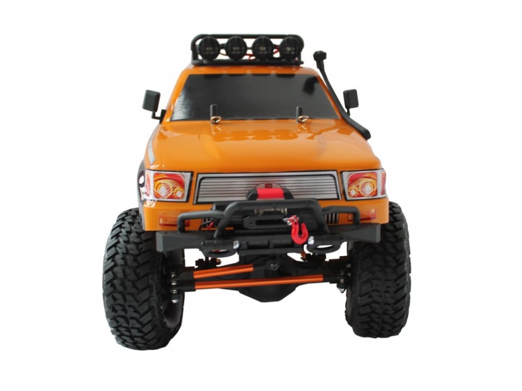 Popularita Crawlerů stále roste! Nyní přicházíme s novinkou pro náročné, s modelem v plné výbavě a vy už nemusíte nic dodatečně kupovat a montovat. Model je dodáván s 5-ti kanálovým vysílačem, který má mimo standardních prvků navíc ovládání LED osvětelení z vysílače, ovládání navijáku tam a zpět, a přepínání 1. a 2. převodového stupně. S modelem lze tedy jezdit rychle výkonně, nebo šplhat po skalách v náročném terénu. Podvozek je výškově nastavitelný aby se dalo přizpůsobit individuelním potřebám.