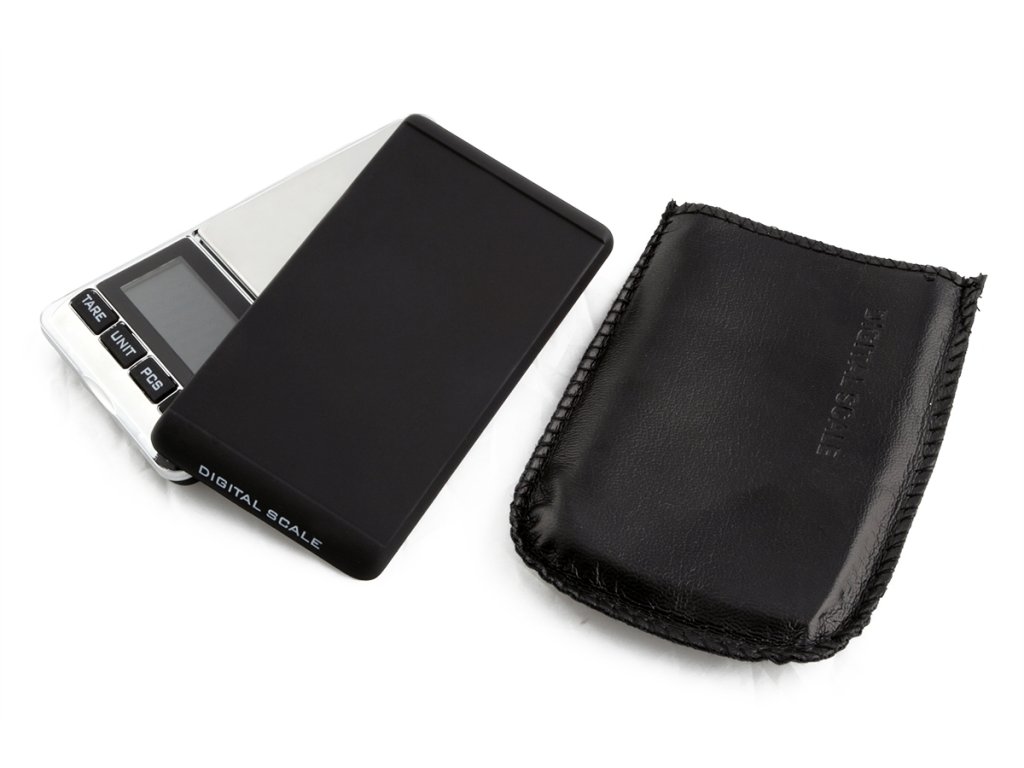 Sada váhy obsahuje: digitální váhu 1000 g, koženkový obal, návod.
