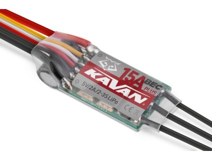 Nová verze základní řady regulátorů KAVAN pro modely letadel s rozšířenými možnostmi programování. Trvalý proud 15A, špičkový proud 20A. Lineární BEC 5V/2A. Napájení 2-3S LiPo....