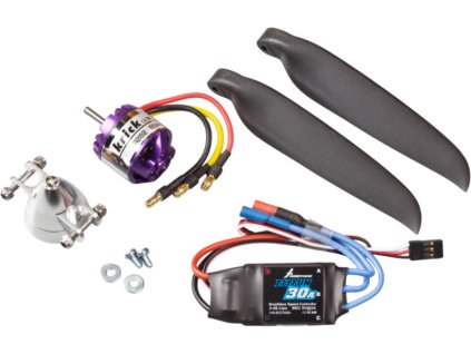 Pohonná jednotka pro RC model letadla Krick Habicht sestává ze střídavého motoru R282 850Kv s rozměry 27,5x30mm s hřídelí 3,17mm a regulátoru 30A, hliníkového kužele 28mm se...
