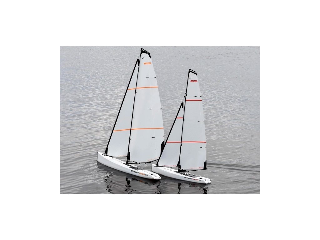 RTR model plachetnice Dragon Flite 95 s odolným plastovým trupem o délce 950mm a celkovou výškou 1470mm.