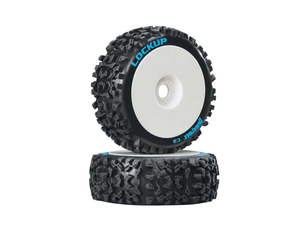 Kompletní kola Duratrax Lockup Buggy 1:8 pro RC modely aut. Disk má bílou barvu, tvrdost směsi pneumatiky je C2 - měkká.