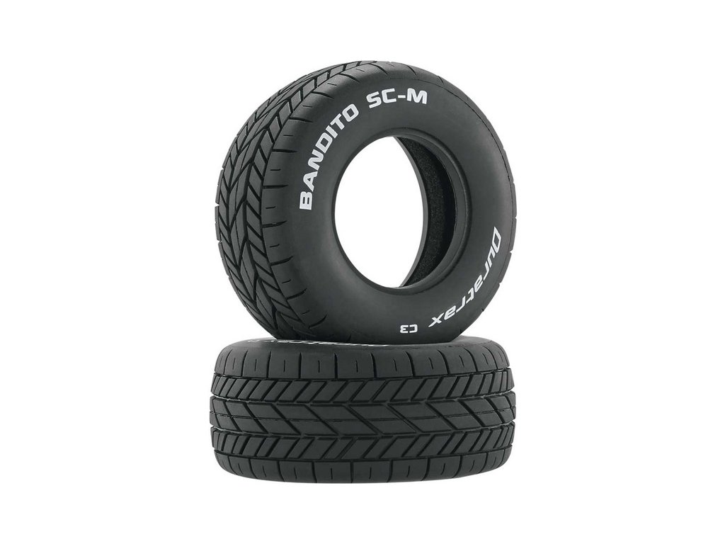 Silniční pneumatiky Duratrax Bandito SC-M. Rozměry: ø102 mm, šířka 43 mm. C2 - měkká směs.