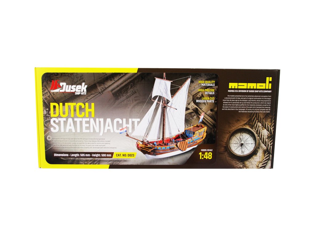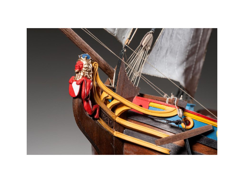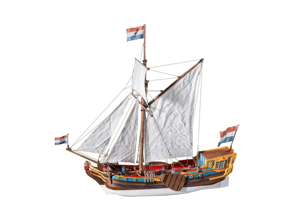Stavebnice holandské státní jachty ze 17 stol. v měřítku 1:48 od značky Dušek. Délka modelu lodi je 505 mm, stavba převážně ze dřeva s drobnými doplňky, součástí je stavební plán a pokyny s mnoha podrobnými obrázky.