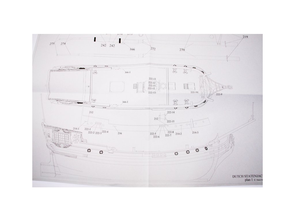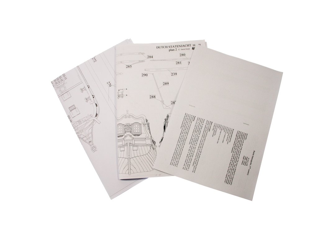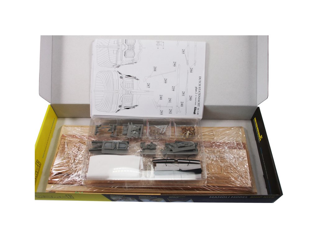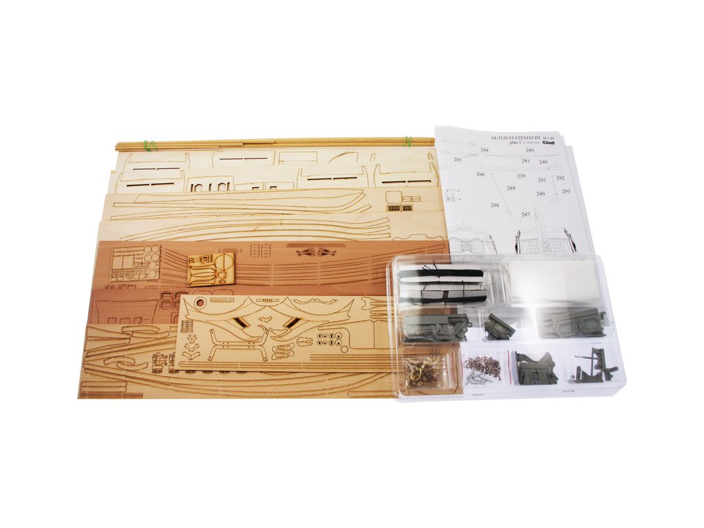 Stavebnice makety Holandské státní jachty ze 17 stol. v měřítku 1:48. Délka modelu lodi je 505 mm, stavba převážně ze dřeva s drobnými doplňky, součástí je stavební plán a pokyny s mnoha podrobnými obrázky.