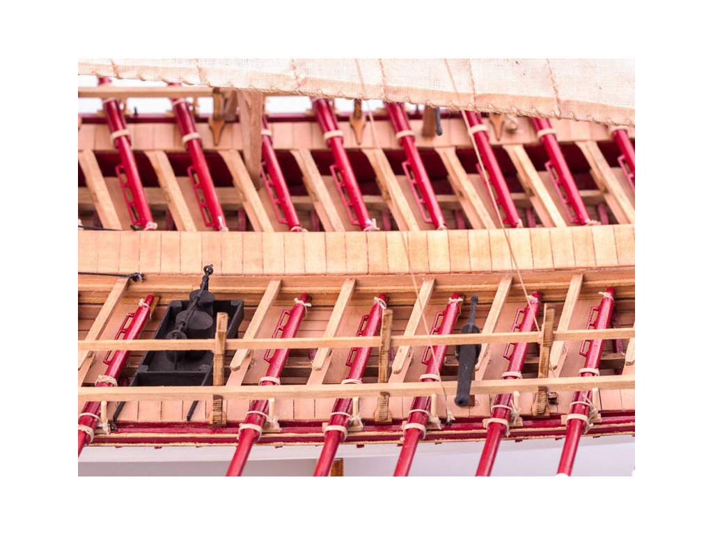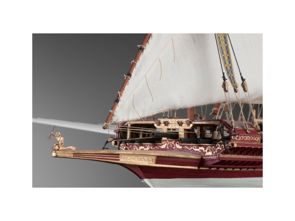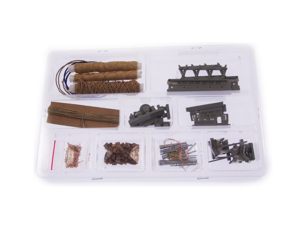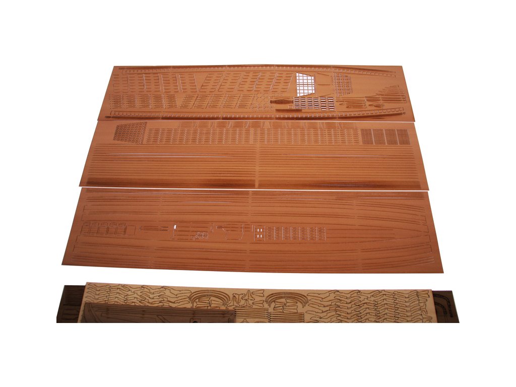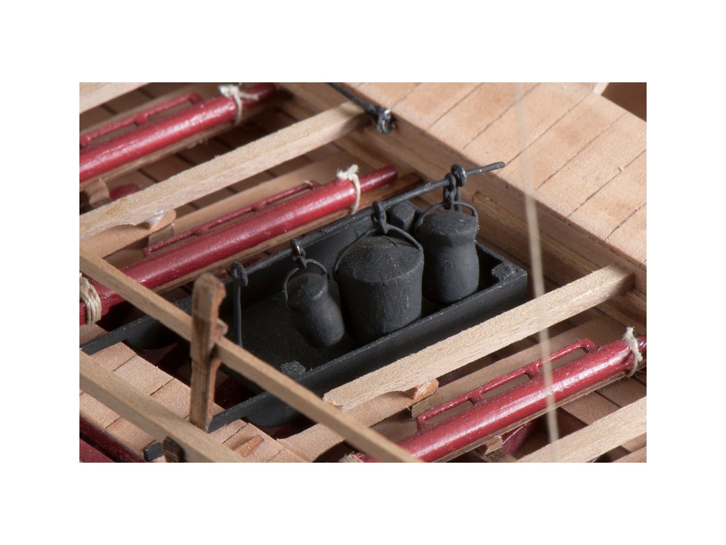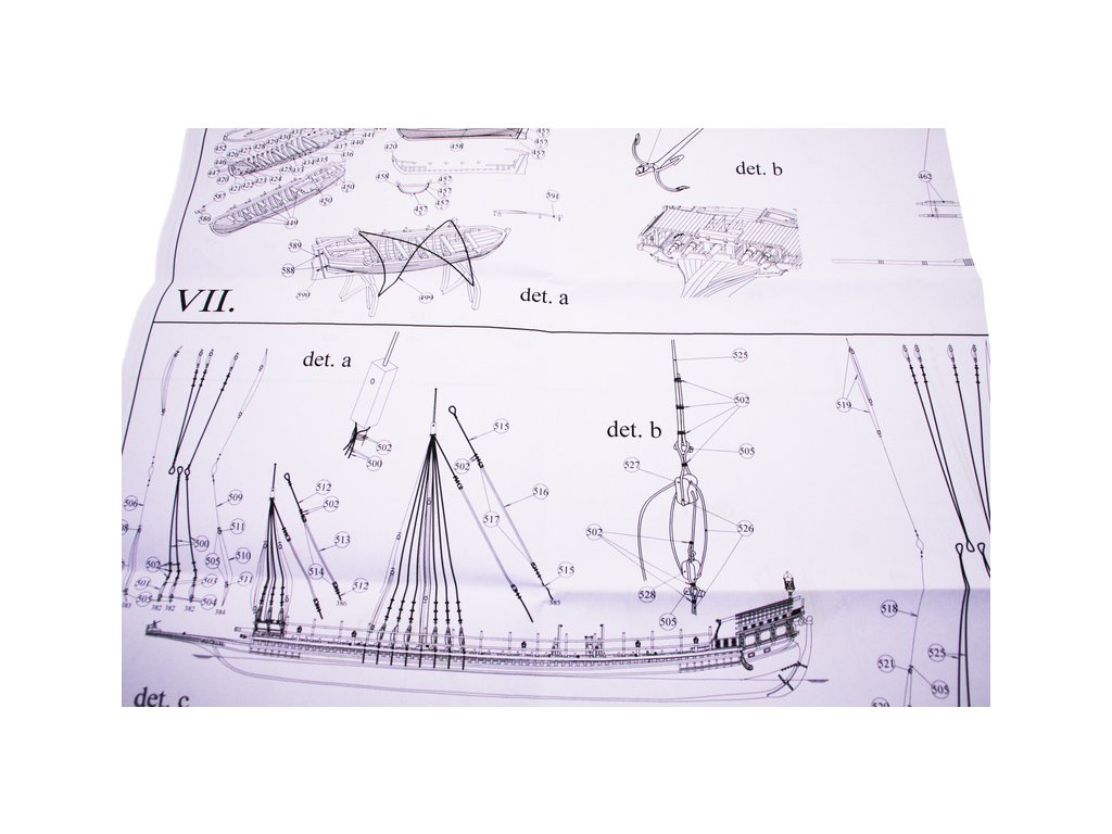 V balení stavebnice makety je sestava laserem vyřezaných desek z překližky a kompletní dřevěné součásti, mosazné součásti, prkna a lišty pro palubu, předtištěné vlajky, látku pro plachtu a dostatek lanoví na celou loď. Sestavení pomáhá podrobný plán stavby a přesné pokyny, manuál EN, FR, SP, CZ.