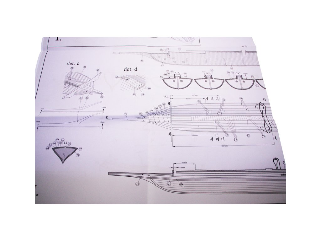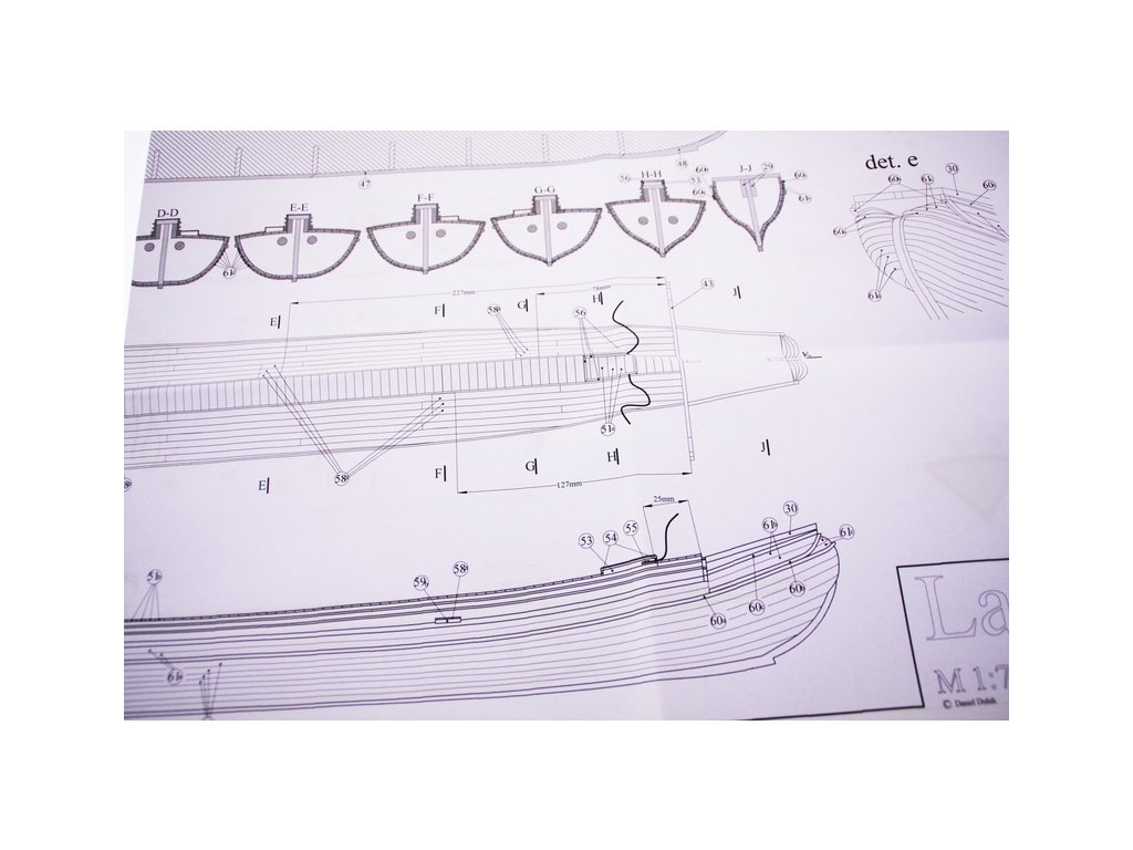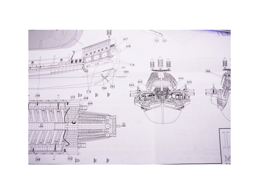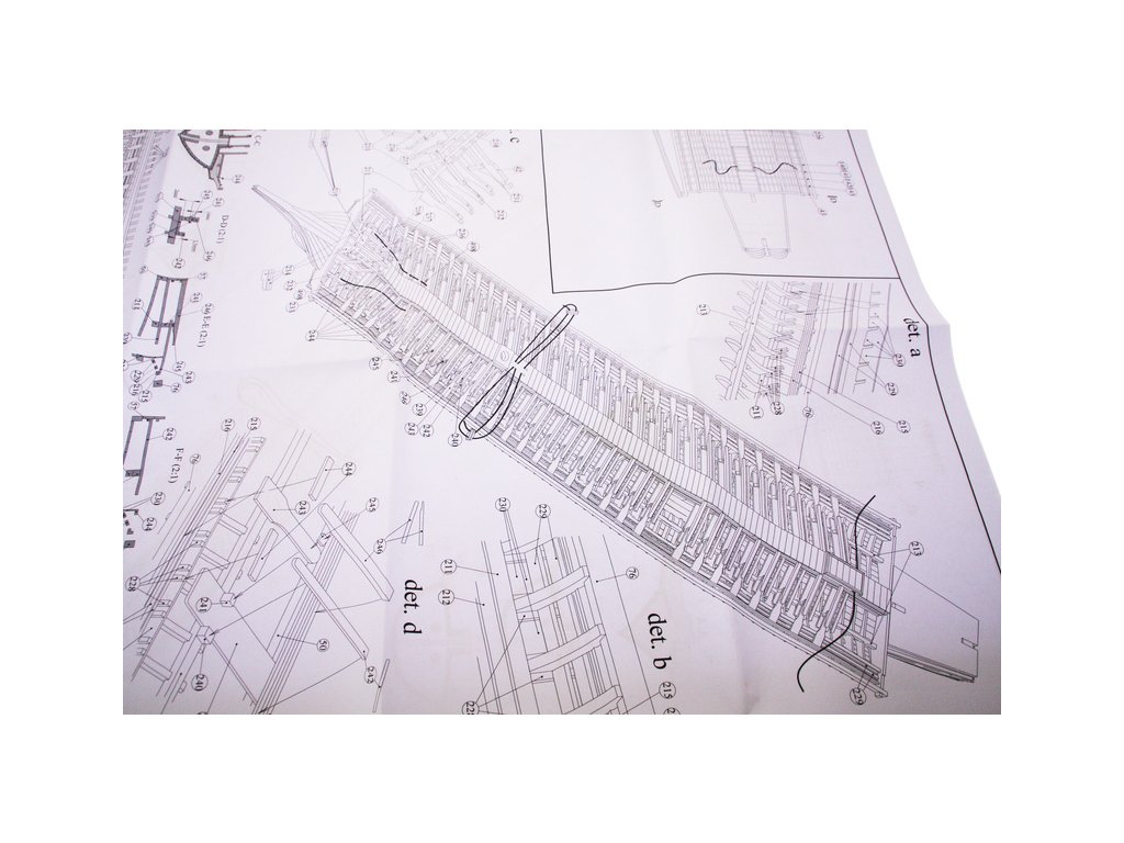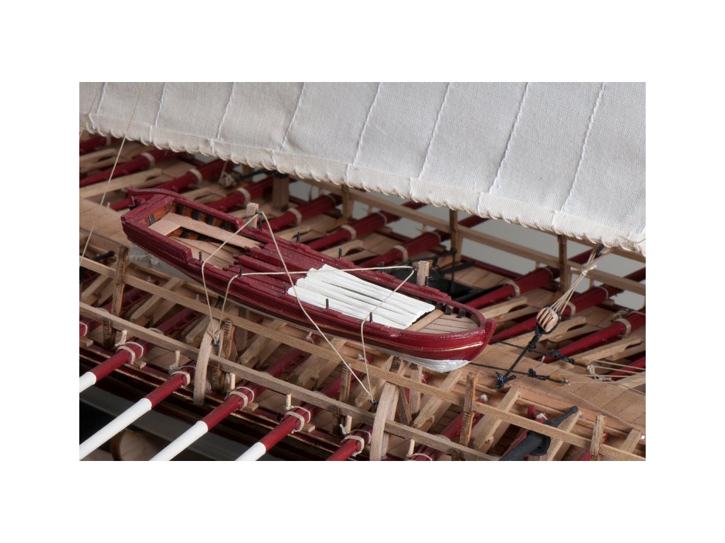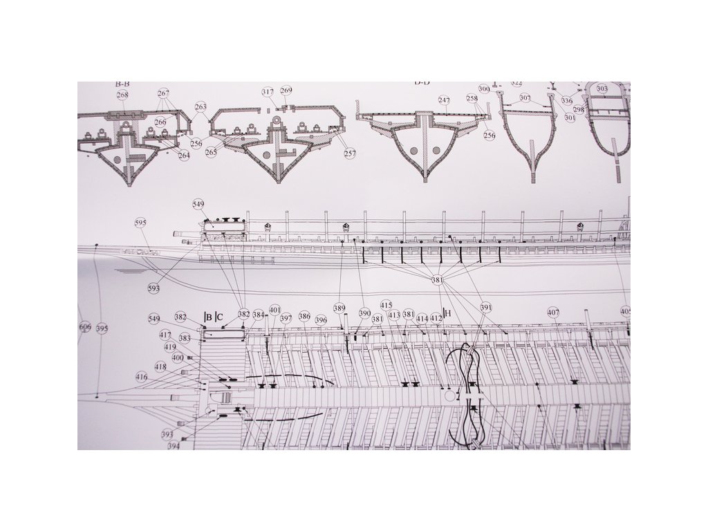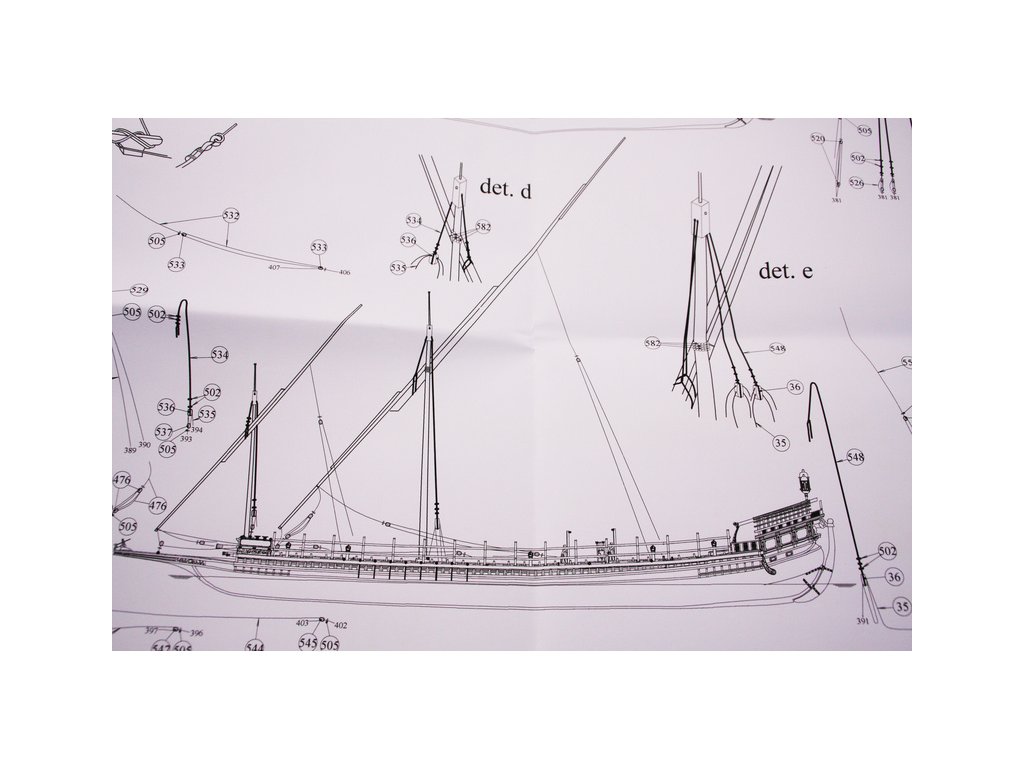 V balení stavebnice makety je sestava laserem vyřezaných desek z překližky a kompletní dřevěné součásti, mosazné součásti, prkna a lišty pro palubu, předtištěné vlajky, látku pro plachtu a dostatek lanoví na celou loď. Sestavení pomáhá podrobný plán stavby a přesné pokyny, manuál EN, FR, SP, CZ.