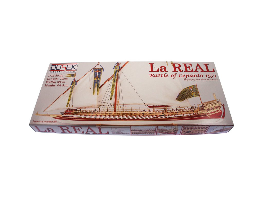 LA REAL byla postavena v barcelonských loděnicích roku 1568. Celková délka byla 60m a šířka 6,2m. Loď byla poháněna pomocí 59 vesel (každé veslo ovládali čtyři veslaři) a dvou latinských plachet umístěných na předním a hlavním stěžni. Galéra REAL byla také charakteristická svou bohatou výzdobou. V současnosti je možné vidět repliku této lodi ve skutečné velikosti v barcelonském MUSEU MARÍTIM.
