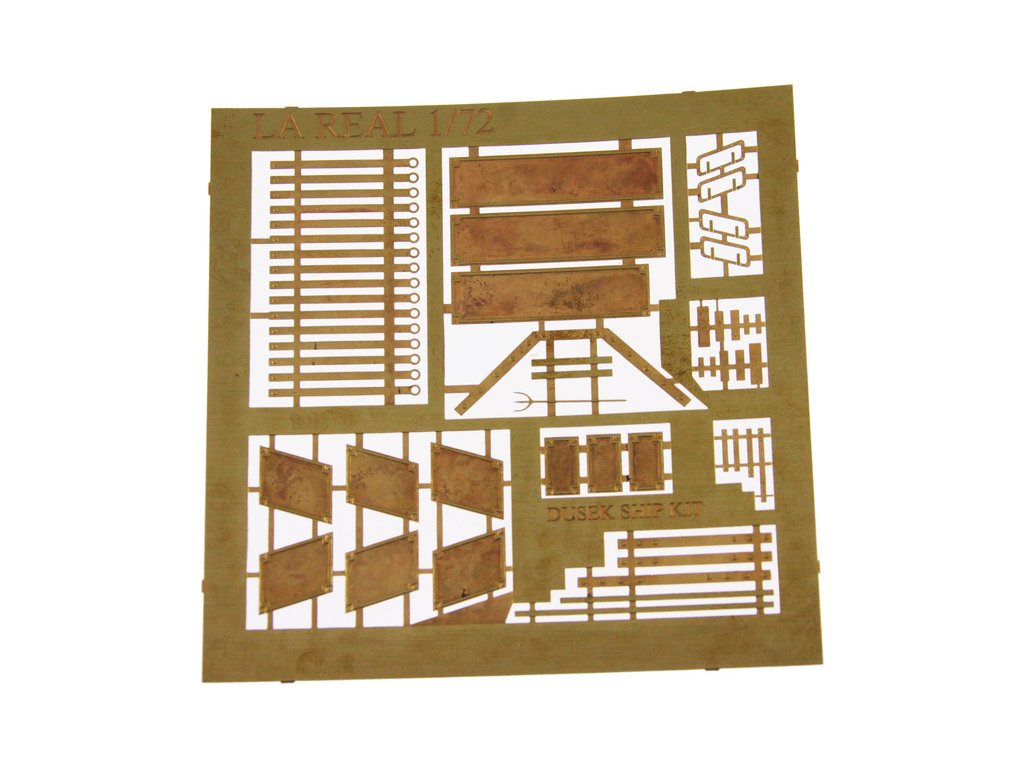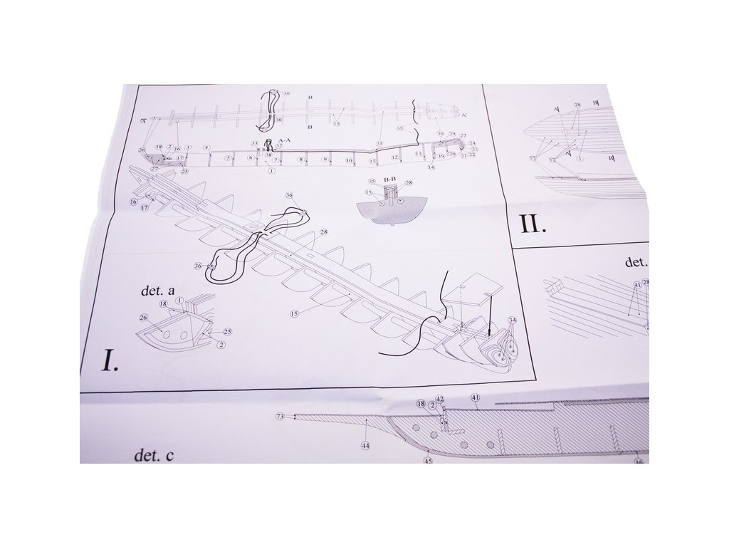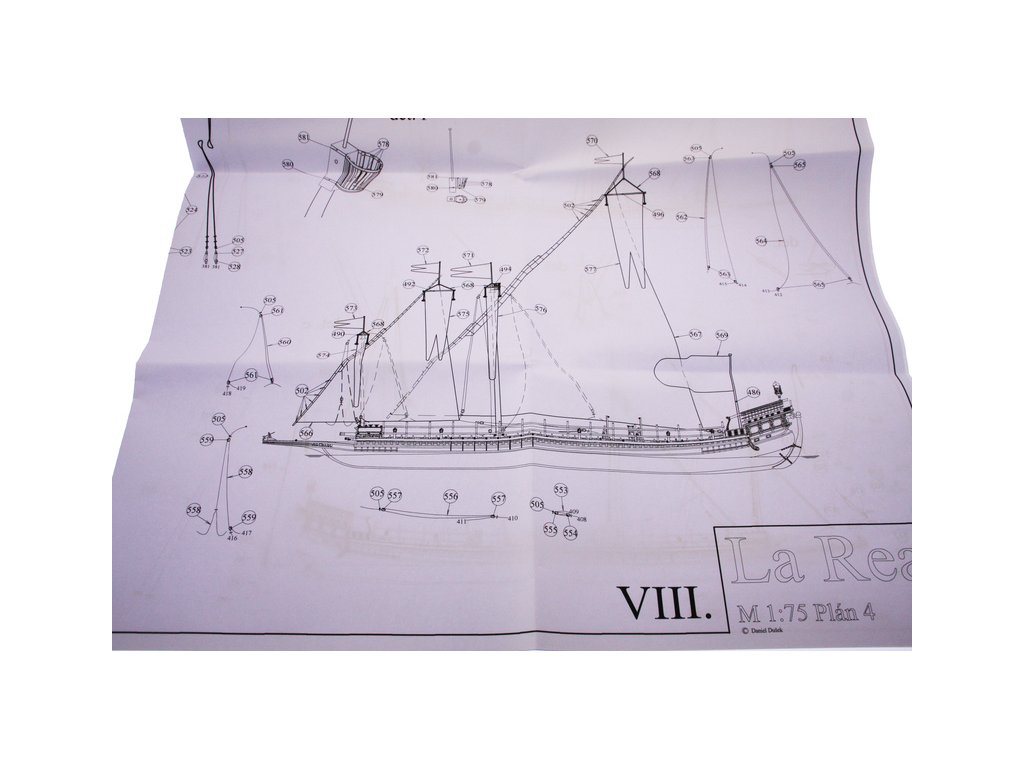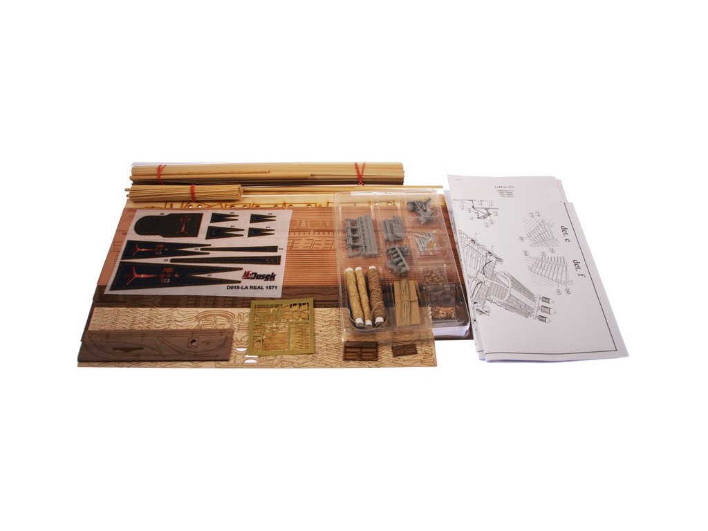 Stavebnice makety lodi La Real Galeere z roku 1571 v měřítku 1:72. Délka modelu lodi je 795mm, stavba převážně ze dřeva s drobnými doplňky, součástí je stavební plán a pokyny s mnoha podrobnými obrázky.