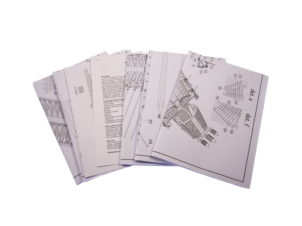 Set obsahuje kompletní sadu výkresové dokumentace s postupem stavby, na výkrese jsou pečlivě označeny díly a je zde i seznam jednotlivých součástí modelu.