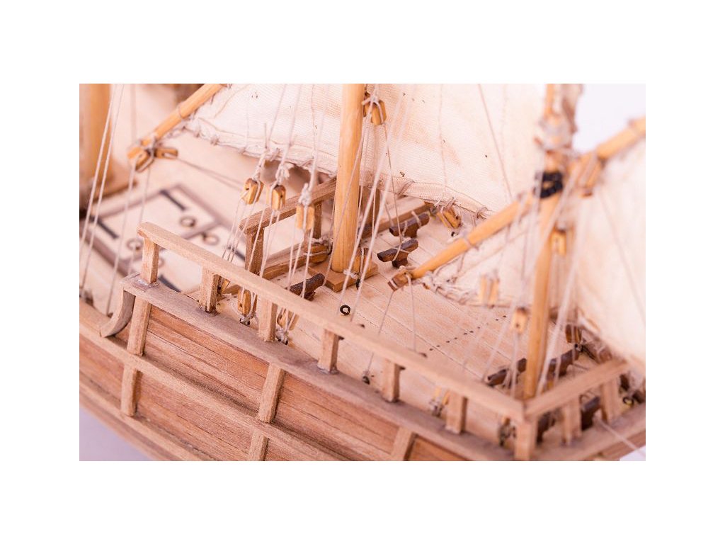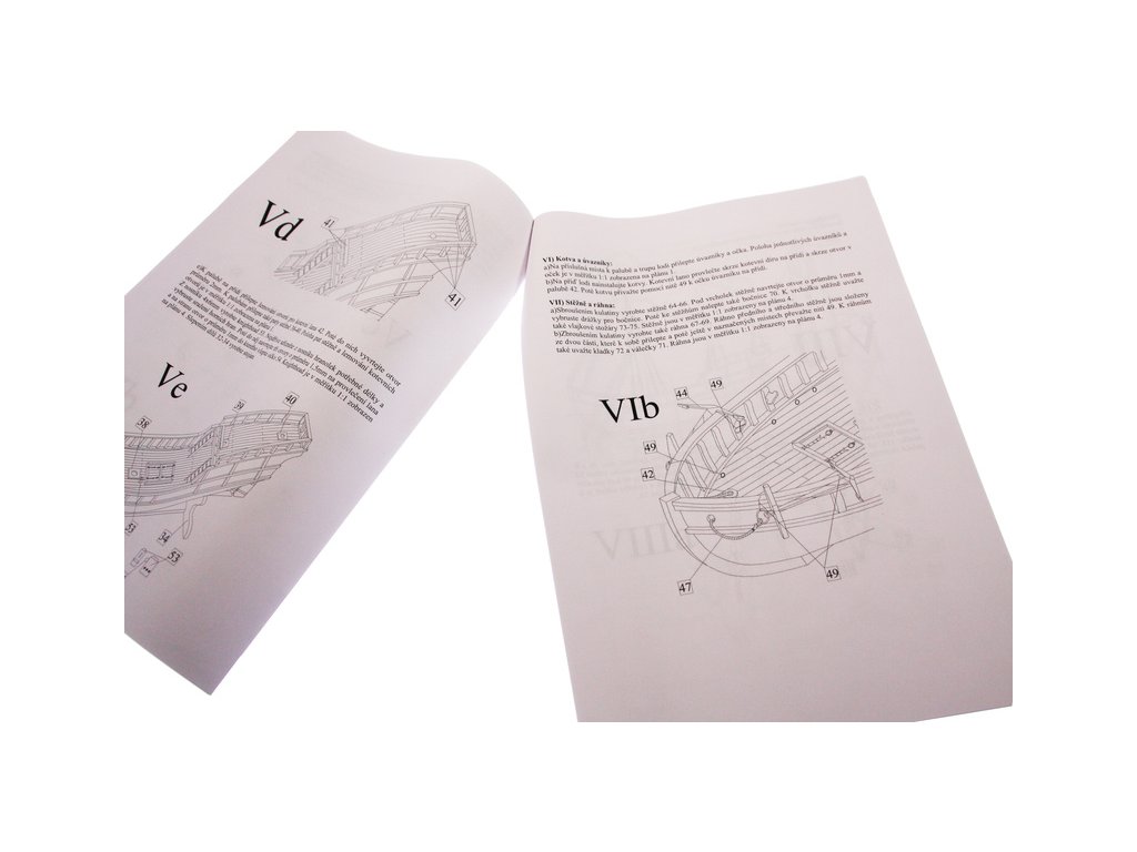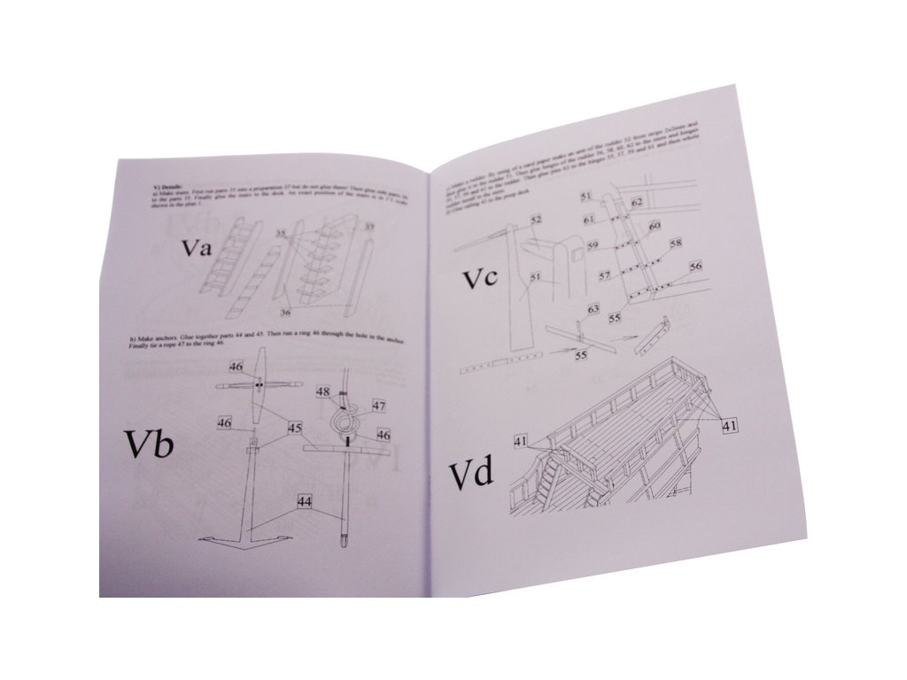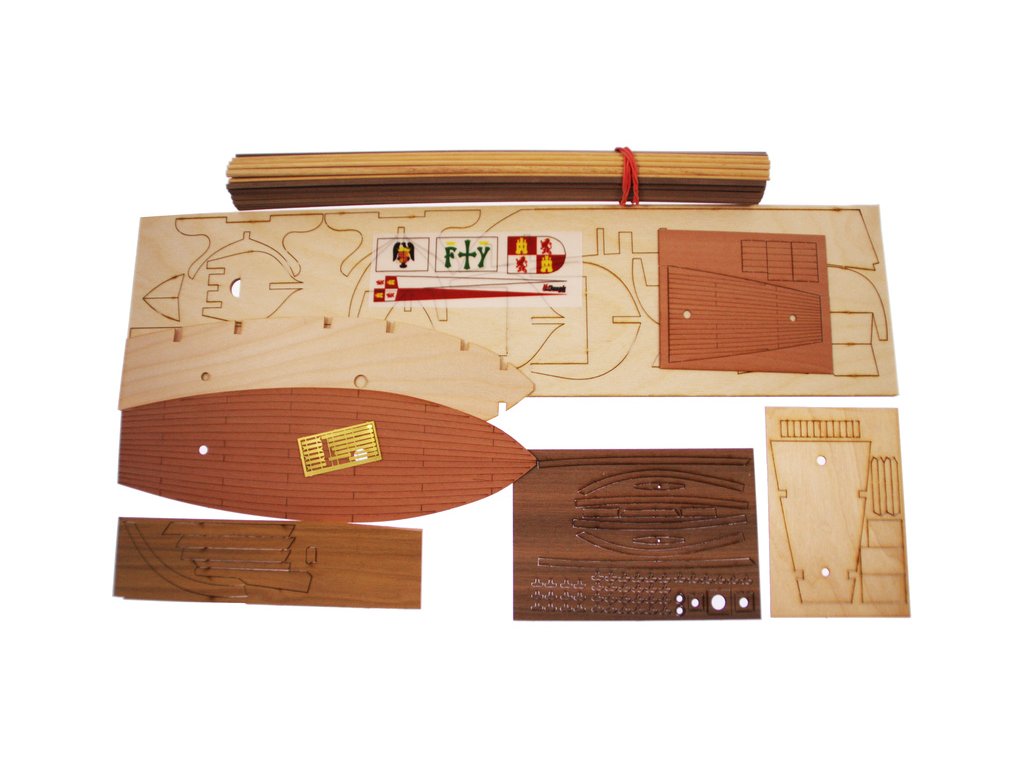 V balení stavebnice makety je sestava laserem vyřezaných desek z překližky a kompletní dřevěné součásti, mosazné součásti, prkna a lišty pro palubu, předtištěné vlajky, látku pro plachtu a dostatek lanoví na celou loď. Sestavení pomáhá podrobný plán stavby a přesné pokyny, manuál EN, FR, SP, CZ.