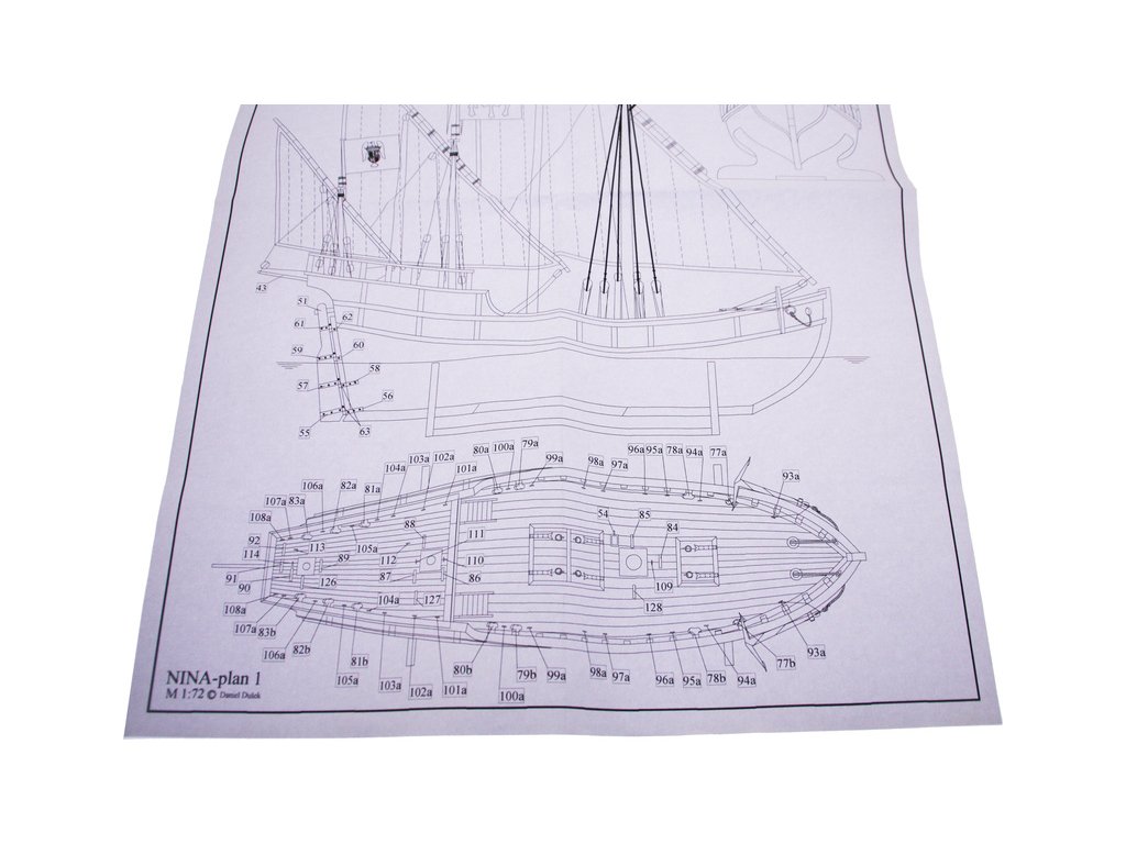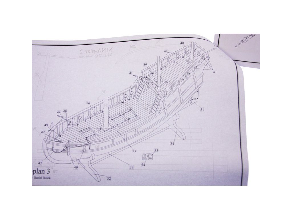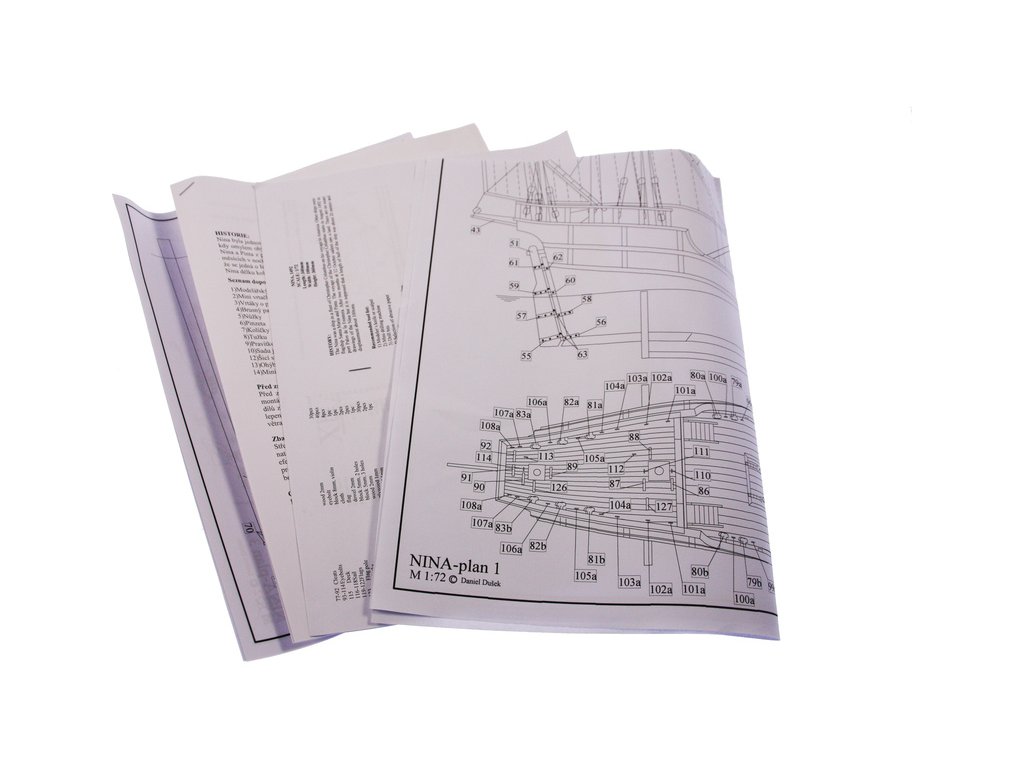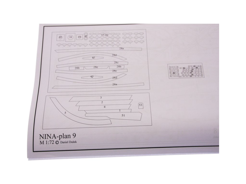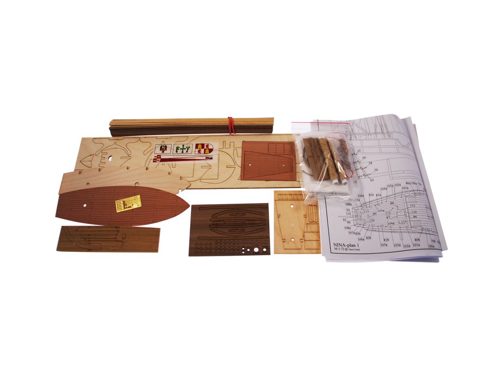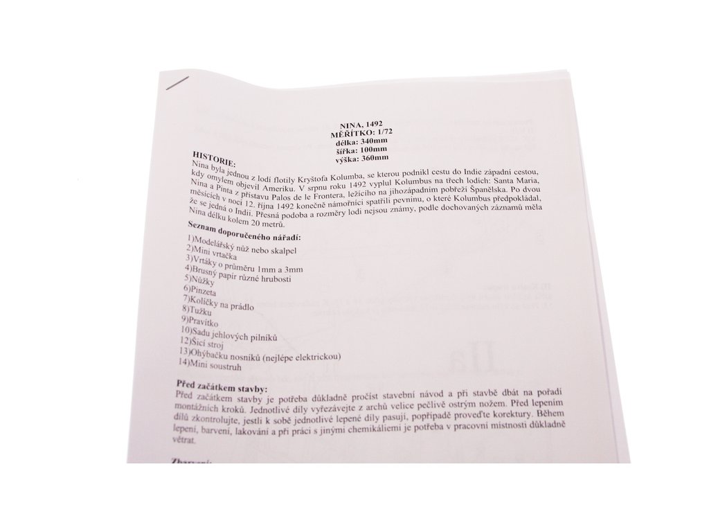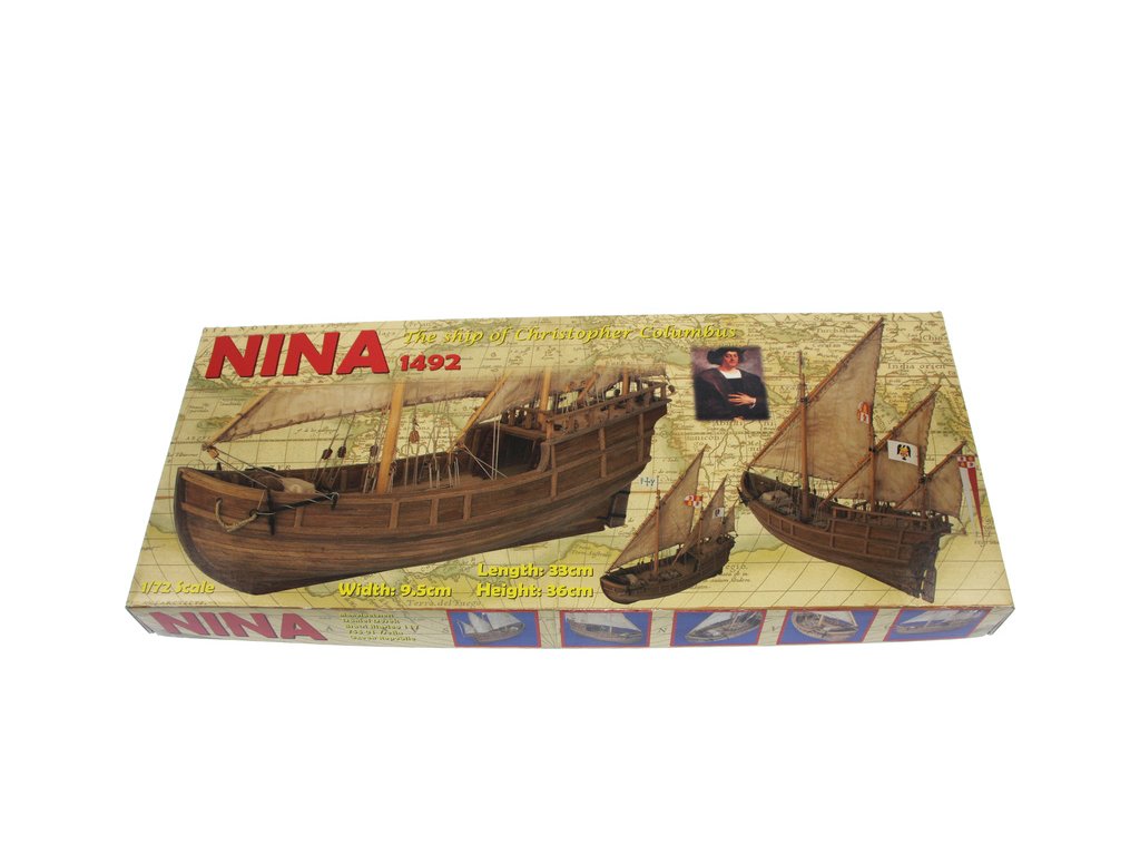 Stavebnice makety lodi Nina z roku 1492 v měřítku 1:72 z flotily Kryštofa Kolumba. Délka modelu lodi je 360mm, stavba převážně ze dřeva s drobnými doplňky, součástí je stavební plán a pokyny s mnoha podrobnými obrázky.