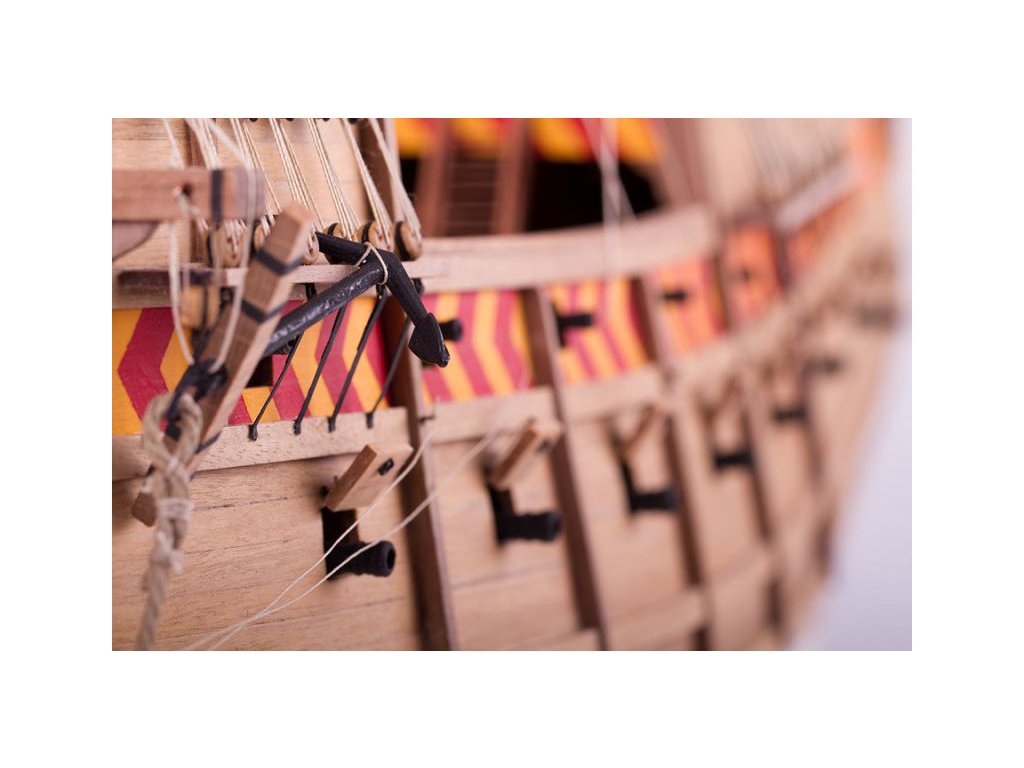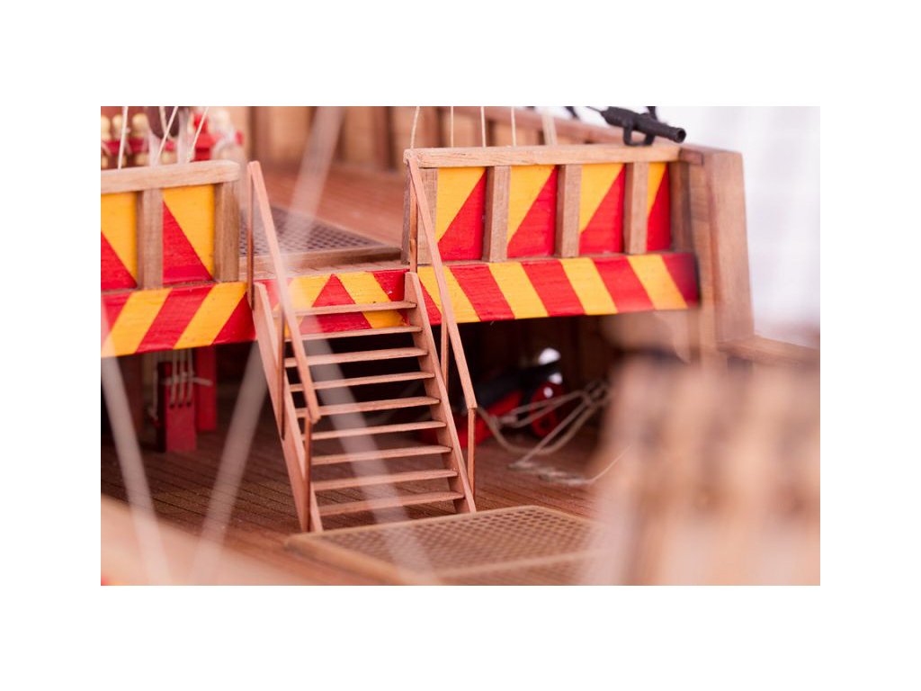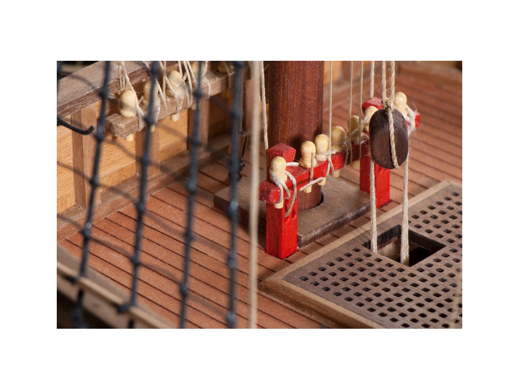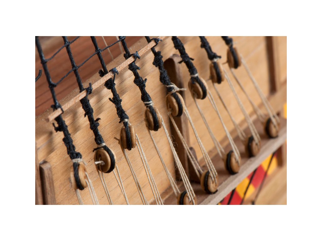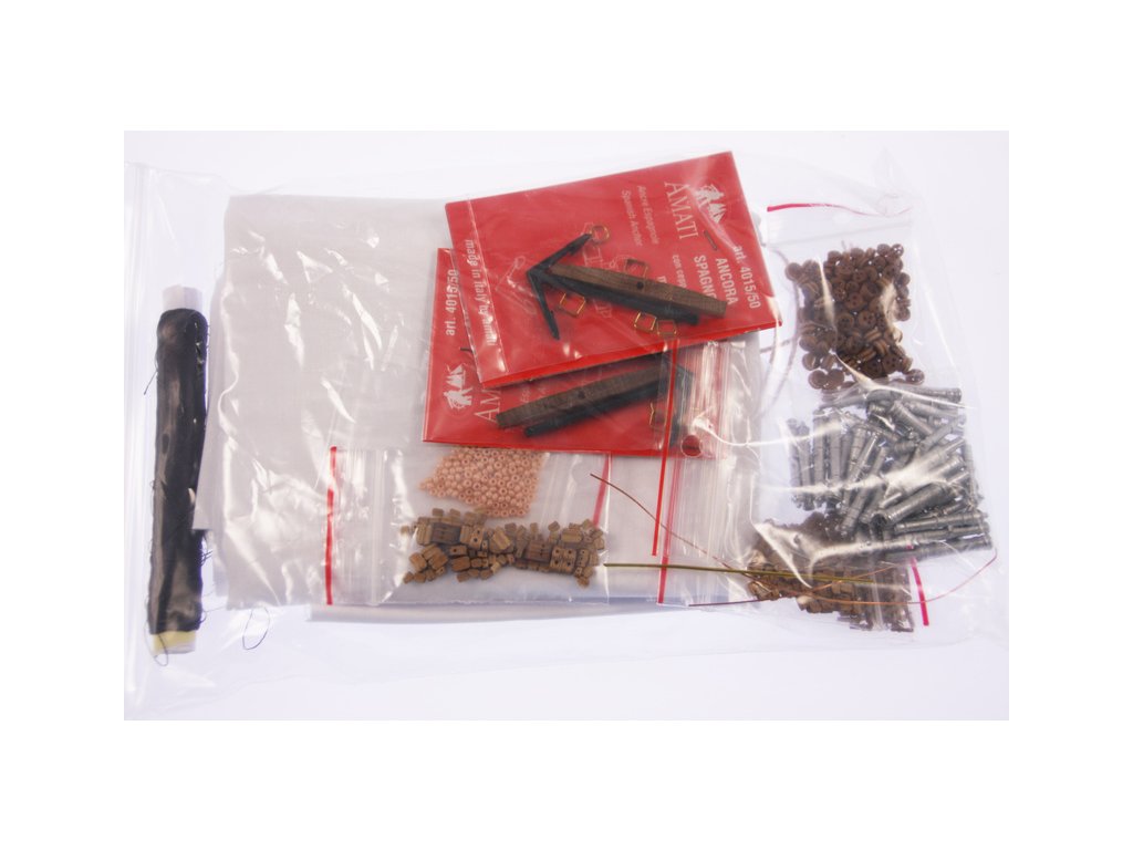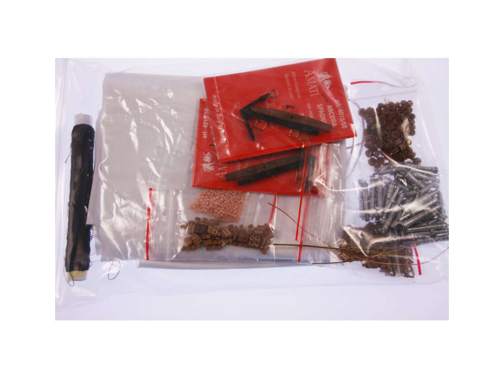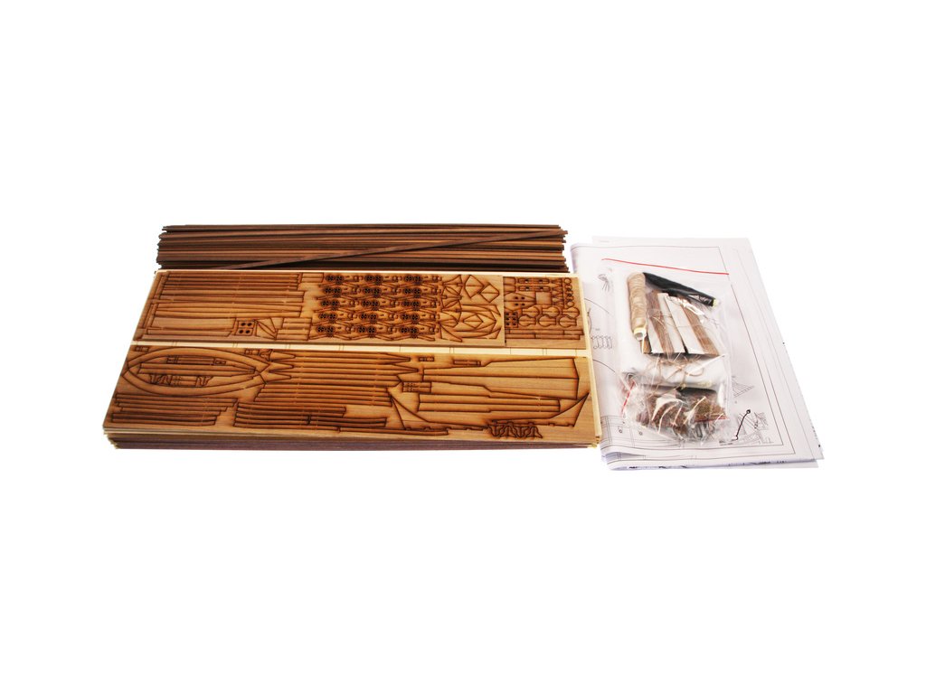 V balení stavebnice makety je sestava laserem vyřezaných desek z překližky a kompletní dřevěné součásti, mosazné součásti, prkna a lišty pro palubu, předtištěné vlajky, látku pro plachtu a dostatek lanoví na celou loď. Sestavení pomáhá podrobný plán stavby a přesné pokyny, manuál EN, FR, SP, CZ.