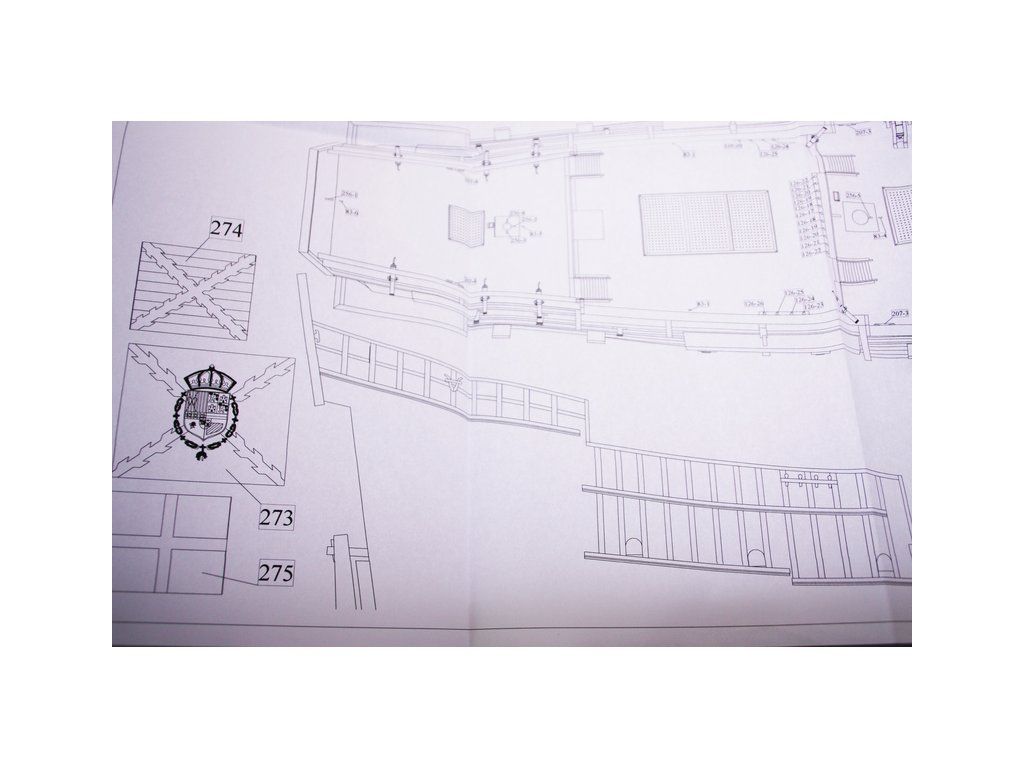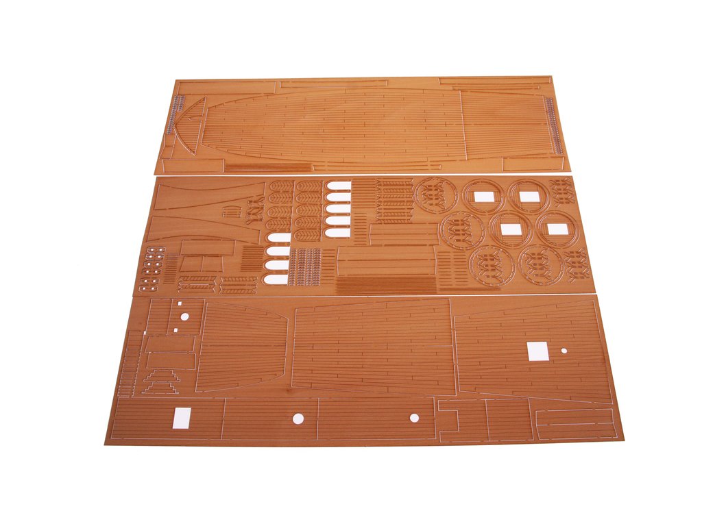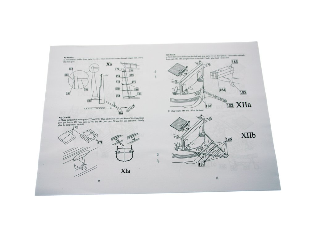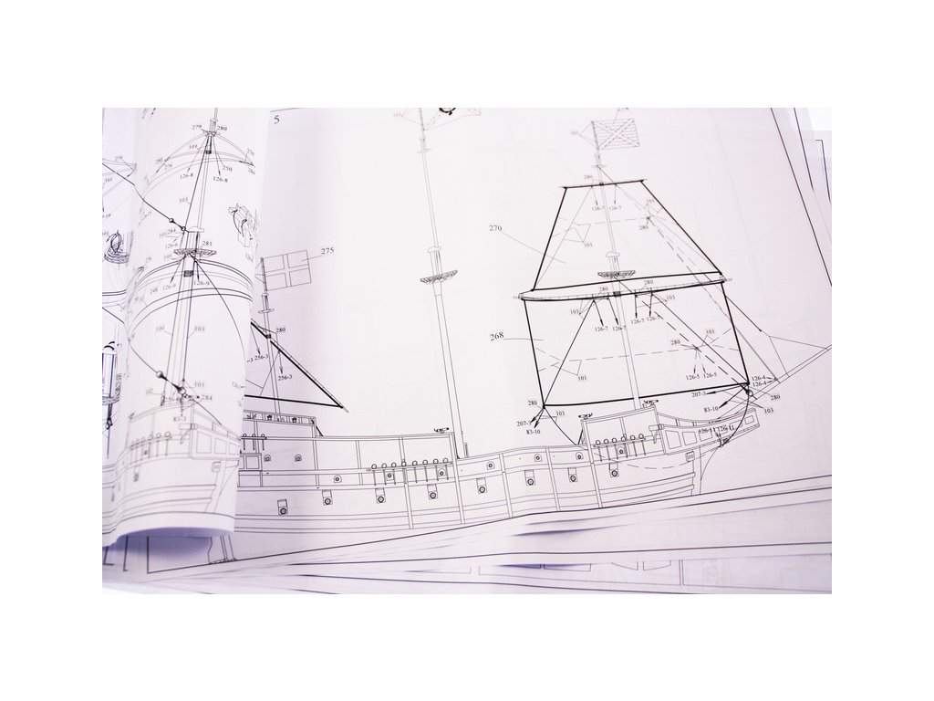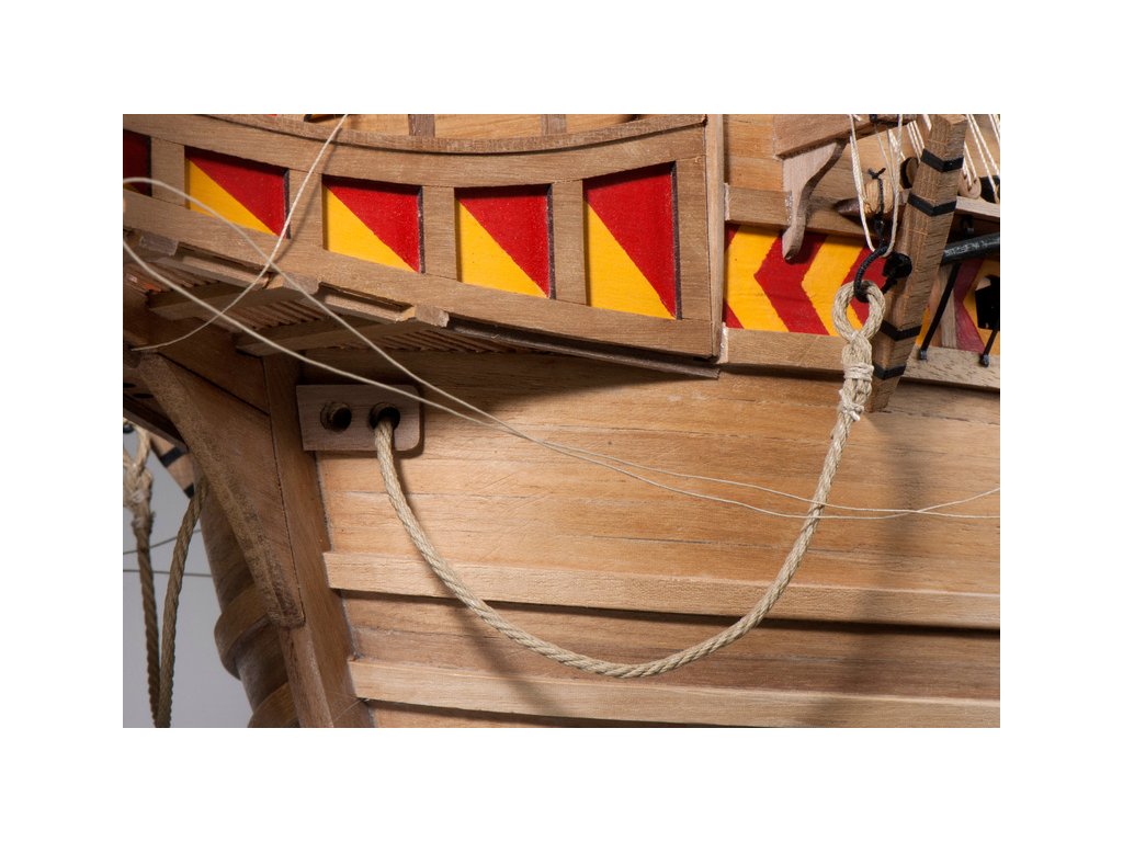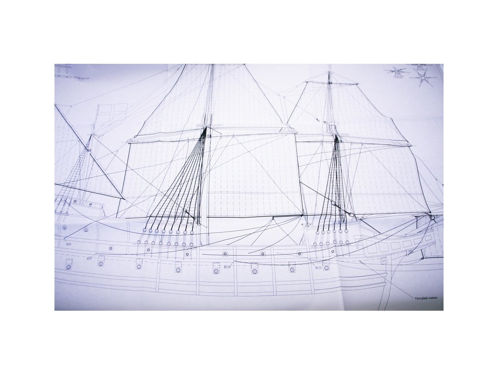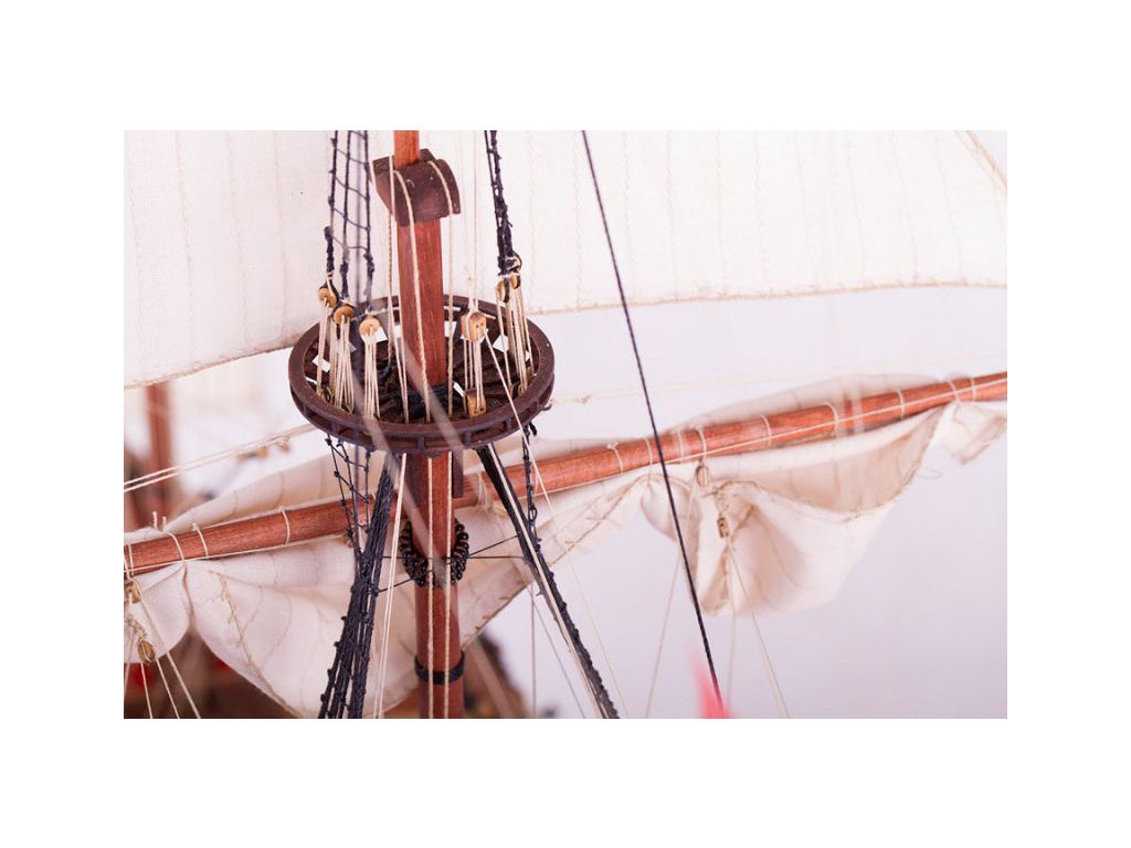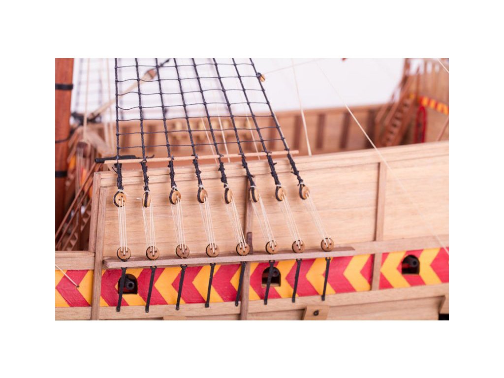 V balení stavebnice makety je sestava laserem vyřezaných desek z překližky a kompletní dřevěné součásti, mosazné součásti, prkna a lišty pro palubu, předtištěné vlajky, látku pro plachtu a dostatek lanoví na celou loď. Sestavení pomáhá podrobný plán stavby a přesné pokyny, manuál EN, FR, SP, CZ.