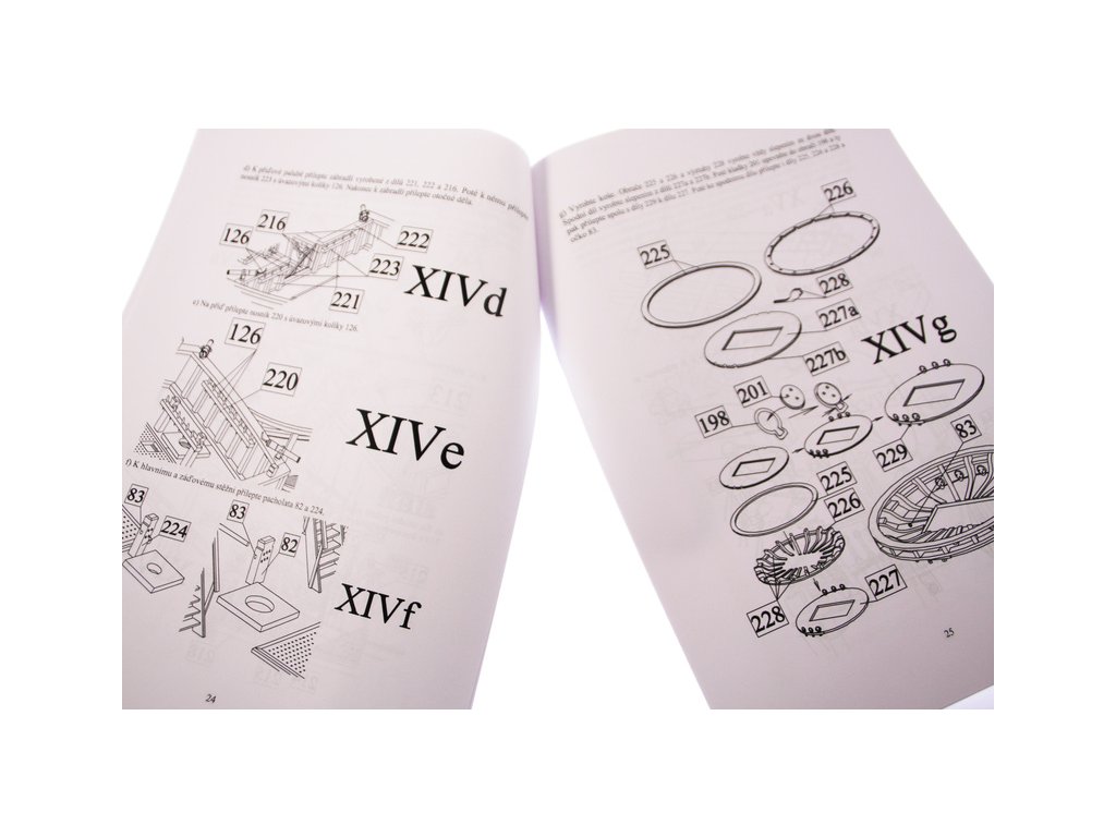 Set obsahuje obsáhlou a kompletní sadu výkresové dokumentace s postupem stavby, na výkrese jsou pečlivě označeny díly a je zde i seznam jednotlivých součástí modelu.