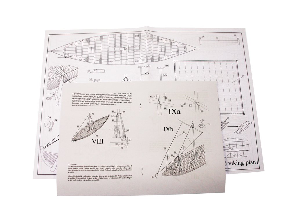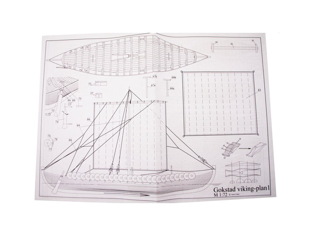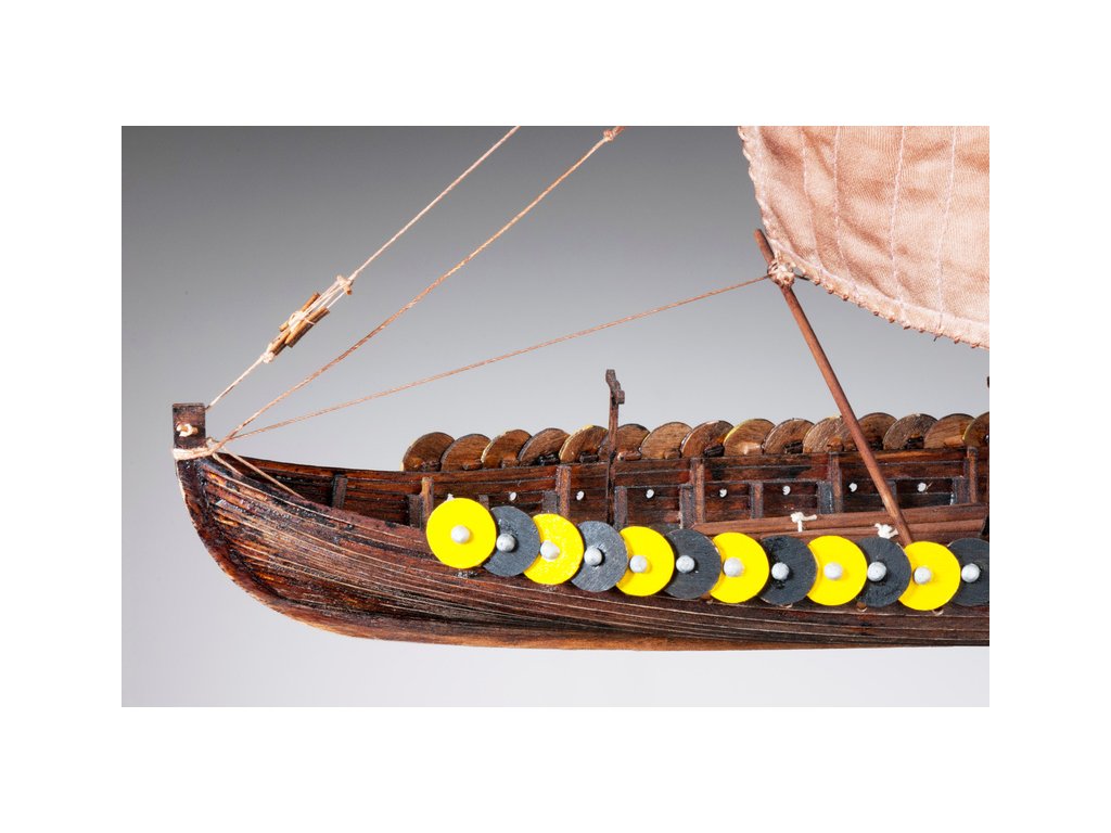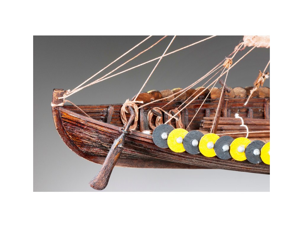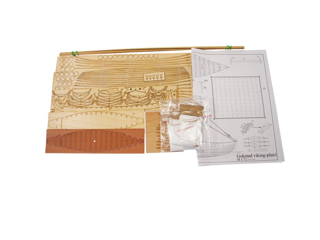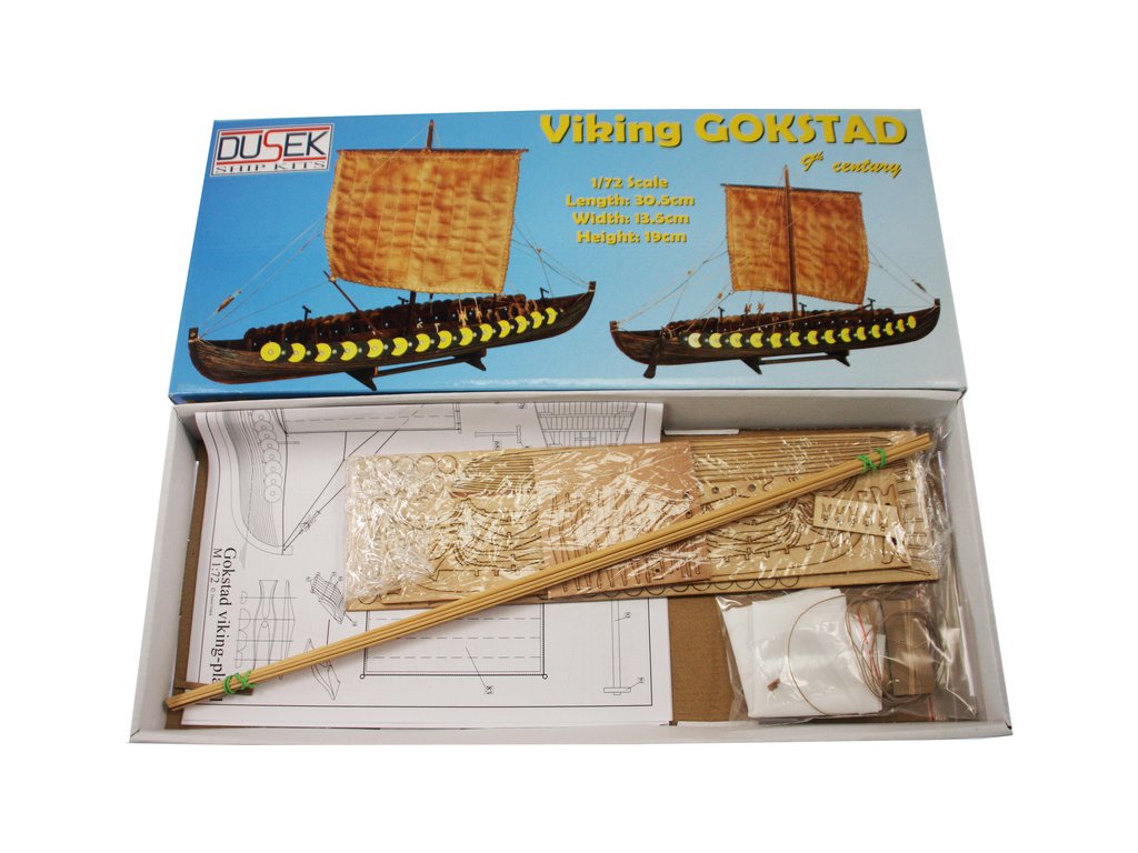 Stavebnice makety Vikingské lodi Gokstad ze druhé poloviny devátého století v měřítku 1:72. Délka modelu lodi je 305mm, stavba převážně ze dřeva s drobnými doplňky, součástí je stavební plán a pokyny s mnoha podrobnými obrázky.